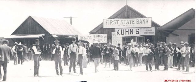 This photograph of the First State Bank of Las Vegas, circa 1905, comes from the special collections at the library of the University of Nevada, Las Vegas.