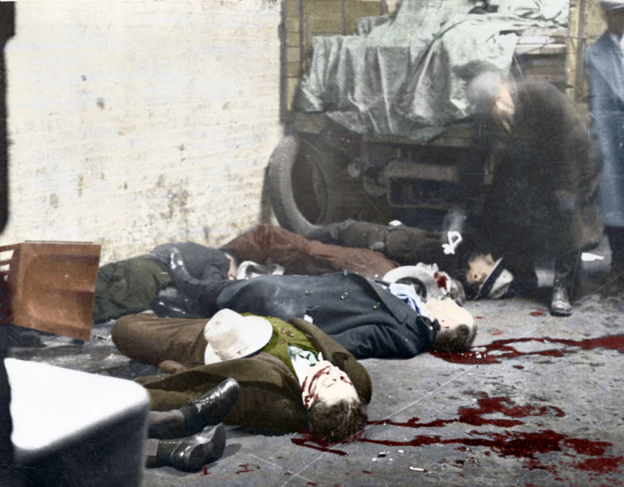 Take, for example, the infamous photos of an entire row of bodies lined up along a wall and riddled with bullets in a Chicago garage on Feb. 14, 1929. These photos are not only gruesomely striking in their own right, they are also a glimpse at the aftermath of perhaps the most notorious gangland slaying in American history. Known as the St. Valentine’s Day Massacre, the hit saw gunmen employed by Al Capone round up and slaughter seven members of the rival North Side Gang.