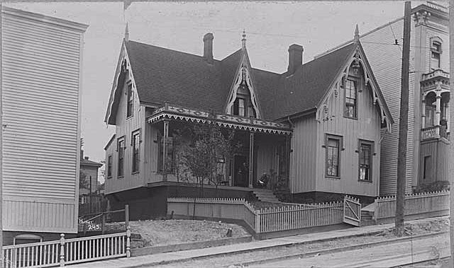 Charles Terry’s residence on the northeast corner of James Street and Third Avenue in Seattle in 1865, courtesy of the Museum of History and Industry. The building later became Seattle’s Public Safety Building. Theodore E. Peiser took the photograph.