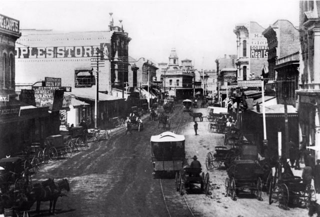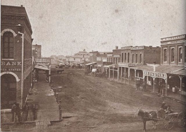 This is a view of downtown Denver’s Blake Street in 1866 from the Denver Public Library.
