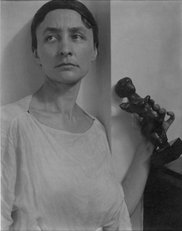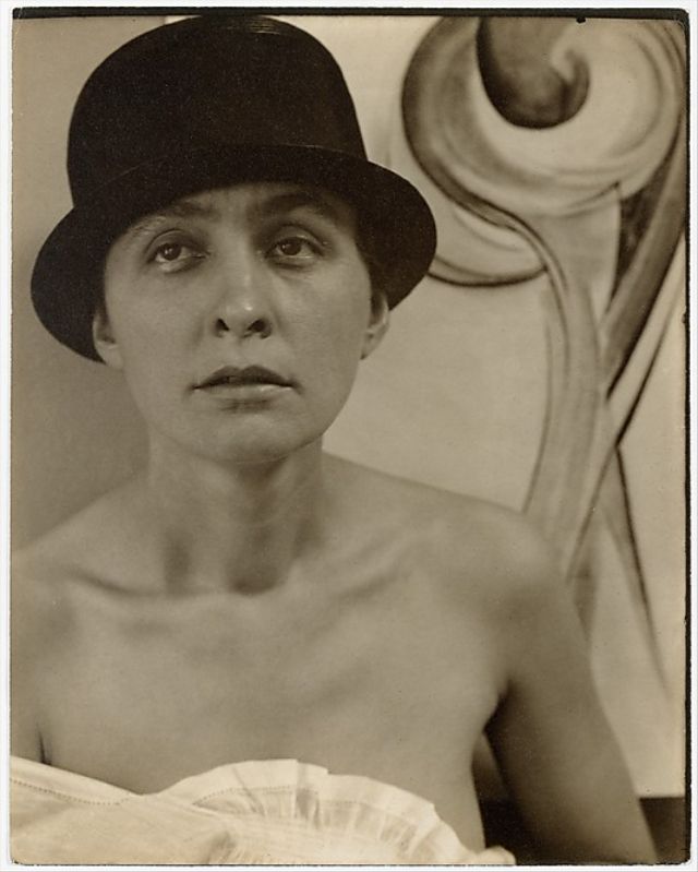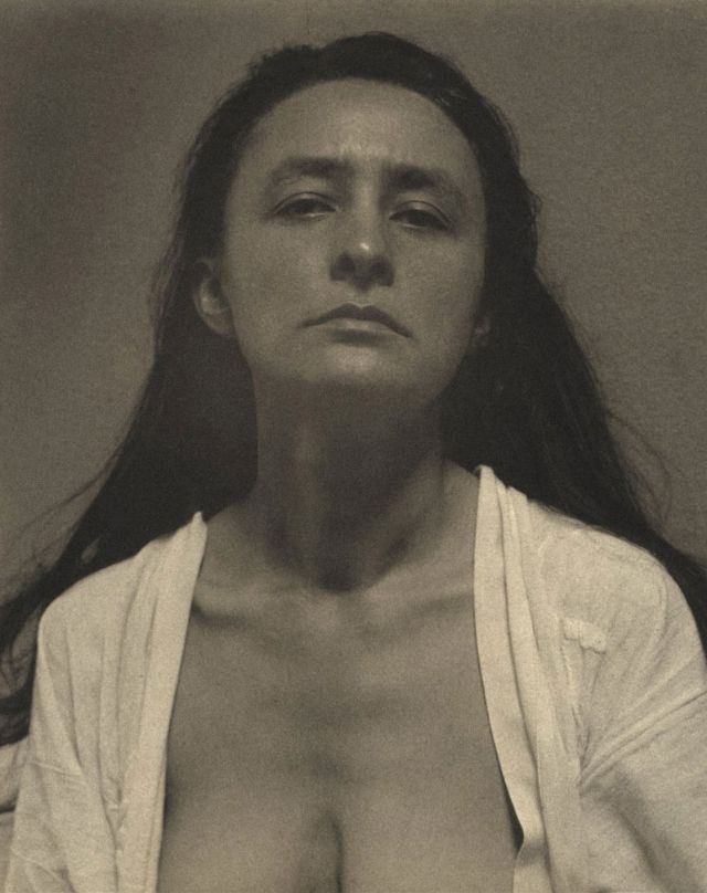 She moved to New York in 1918 at Stieglitz’s request and began working seriously as an artist. They developed a professional and personal relationship that led to their marriage in 1924. O’Keeffe created many forms of abstract art, including close-ups of flowers, such as the Red Canna paintings, that many found to represent female genitalia, although O’Keeffe consistently denied that intention. The imputation of the depiction of women’s sexuality was also fueled by explicit and sensuous photographs of O’Keeffe that Stieglitz had taken and exhibited.