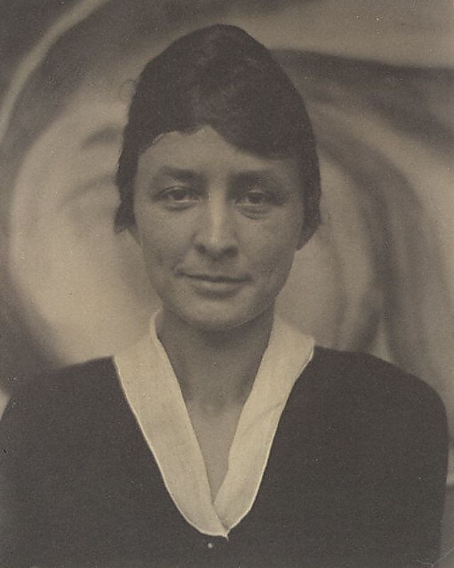 In 1905, O’Keeffe began art training at the School of the Art Institute of Chicago and then the Art Students League of New York. In 1908, unable to fund further education, she worked for two years as a commercial illustrator and then taught in Virginia, Texas, and South Carolina between 1911 and 1918. She studied art in the summers between 1912 and 1914 and was introduced to the principles and philosophies of Arthur Wesley Dow, who created works of art based upon personal style, design, and interpretation of subjects, rather than trying to copy or represent them. This caused a major change in the way she felt about and approached art, as seen in the beginning stages of her watercolors from her studies at the University of Virginia and more dramatically in the charcoal drawings that she produced in 1915 that led to total abstraction. Alfred Stieglitz, an art dealer and photographer, held an exhibit of her works in 1917. Over the next couple of years, she taught and continued her studies at the Teachers College, Columbia University.