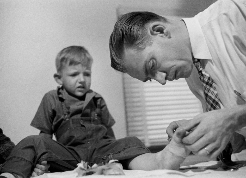 Dr. Ernest Ceriani makes a house call on foot, Kremmling, Colo., 1948.Ralph Pickering holds his 5-week-old baby while waiting to be Dr. Ceriani’s first patient of the day. Pickering, a horseback guide to tourists coming to see the majestic Rocky Mountains, traveled from an outlying ranch to reach the doctor’s office.Dr. Ceriani sits at bedside of a patient as he assesses flu symptoms during a house call. When Smith began “Country Doctor,” he shot for a period of time with no film in his camera, to help Ceriani get used to his presence without wasting precious film.In the backseat of a car, Dr. Ceriani administers a shot of morphine to a 60-year-old tourist from Chicago, seen here with her grandson, who was suffering from a mild heart disturbance.Dr. Ceriani examines a feverish 4-year-old girl suffering from tonsillitis. Although most of his patients were children, Ceriani was initially inexperienced in pediatrics when he started his practice, and studied up on it whenever he had the chance.Though he had no vacations and few days off, Dr. Ceriani did have use of a small hospital, which was equipped with an X-ray machine, an autoclave and an oxygen tent, among other medical necessities. Here, he explains an X-ray — he developed the film himself — to one of his rancher patients.The doctor tapes a patient who broke some ribs after a horse rolled over him. “His income for covering a dozen fields is less than a city doctor makes by specializing in just one,” LIFE’s editors noted, “but Ceriani is compensated by the affection of his patients and neighbors, by the high place he has earned in his community and by the fact that he is his own boss. For him, this is enough.”Dr. Ceriani uses a syringe to irrigate wax from an elderly man’s ear to improve his hearing.Dr. Ceriani examines the stitches in the lacerated hand of a young patient.Two friends transport Dr. Ceriani to Gore Canyon so he can enjoy a few hours of recreational fishing, a rare treat for the hard-working physician.Dr. Ceriani fly-fishes on the Colorado River.Thirty minutes into his fishing excursion, Dr. Ceriani is called to an emergency: A young girl has been kicked in the head by a horse and is badly injured.The child’s worried parents look on as Dr. Ceriani, surrounded by nurses, examines their 2-year-old daughter.Dr. Ceriani has stitched the girl’s wound to minimize scarring, but he must now find a way to tell the parents that her eye cannot be saved and they must take her a specialist in Denver to have it removed.The doctor helps a rancher carry his son into the hospital. The inebriated young man dislocated his elbow when he was thrown from a bronco at a rodeo.The injured elbow required a painful reset.“Don’t tell my mother,” said the young man. Still under the effects of ether, he didn’t realize she’d been holding his hand during the procedure.Dr. Ceriani checks the blood pressure of 85-year-old Thomas Mitchell, who came to the hospital with a gangrenous leg. Knowing that Mitchell might not be strong enough to endure the necessary amputation, Ceriani had been postponing surgery.When Mitchell finally rallied, the doctor gently carried him from the basement ward up to the operating room of the hospital, which had no elevator.Dr. Ceriani gives the 85-year-old man spinal anesthesia before amputating his gangrenous left leg.Dr. Ceriani responds to a late-night call when an 82-year-old man suffers a heart attack at a boarding house. Town marshal Chancy Van Pelt and one of the man’s fellow tenants stand by.Knowing the man who suffered the heart attack at the boarding house will not make it through the night, Dr. Ceriani calls for a priest from the kitchen.Dr. Ceriani helps the town marshal carry the heart attack victim to the ambulance. There, the country doctor will see that his patient is as comfortable as possible, knowing there’s nothing he can do to save him.The treeless ranching community of Kremmling, Colo., stands on a 7,000-ft. plateau beneath the towering Rocky Mountains.Dr. Ceriani holds 11-month-old son Gary as his wife, Bernetha, steadies 3-year-old Phillip on a fence while watching a parade. Though they’d been married for four years at the time Smith was profiling the doctor, Mrs. Ceriani still struggled with the unpredictability of her husband’s schedule.A fund-raising committee in Kremmling was able to raise $35,000 in 1947 to purchase the home of the town’s retiring physician and turn it into a 14-bed hospital. The funds were used to stock the tiny hospital with as much equipment — some of it war surplus — as could be afforded. Middle Park Hospital had only three wards that could accommodate 14 patients. With a new hospital in place, the town then put out a call for a new general practitioner — a call answered by Dr. Ceriani.After finishing a surgery that lasted until 2 AM, Dr. Ceriani stands exhausted in the hospital kitchen with a cup of coffee and a cigarette. “The nurses,” LIFE noted, “constantly admonish him to relax and rest, but because they are well aware that he cannot, they keep a potful of fresh coffee simmering for him at all hours.”Dr. Ernest Ceriani in the small Kremmling, Colo., hospital.Doctor Ceriani checks 4-year-old Jimmy Free’s foot, cut when the boy stepped on broken glass.Dr. Ceriani examines his handiwork after the partial amputation of a patient’s leg, Kremmling, Colorado, August 1948. The patient, Thomas Mitchell, was suffering from a gangrenous infection.An operating room in Kremmling, Colo.Dr. Ceriani with a patient.Dr. Ernest Ceriani delivers a baby.Maternity ward, Kremmling, Colo., 1948.An incubator in Kremmling, Colo., 1948.The contents of a country doctor’s bag, Kremmling, Colo., 1948.Doctor Ceriani and town marshal Chancey Van Pelt carry a patient from a cabin in the hills near Kremmling, Colorado, 1948.Dr. Ernest Ceriani on his way to a house call in foul weather, Kremmling, Colo., 1948.
