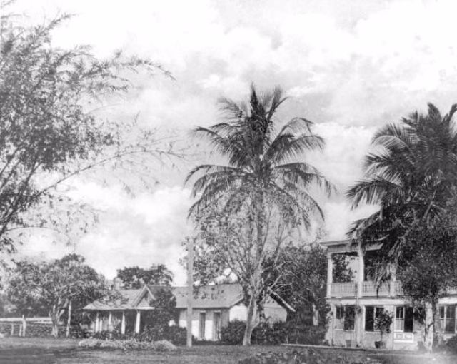 Gleason Waite Romer took this snapshot of Old Fort Dallas and the Seminole Club hotel in Miami in 1895. This photo comes from the State Archives of Florida.