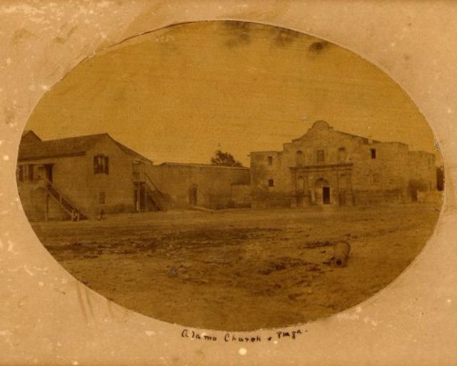 The earliest known photograph of the Alamo Church and Plaza in San Antonio comes from 1858, according to the Daughters of the Republic of Texas Library.