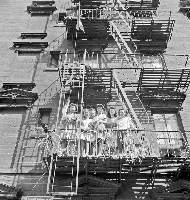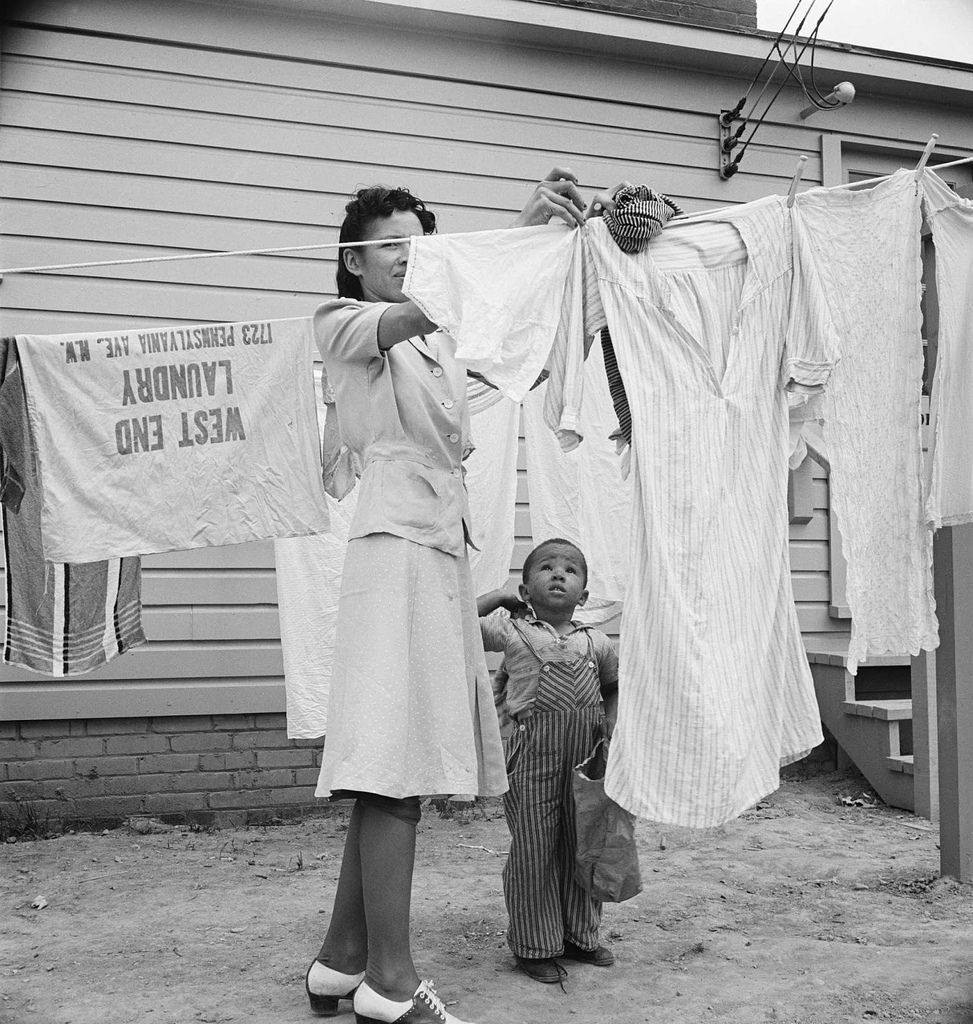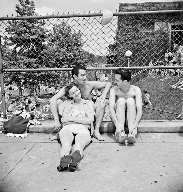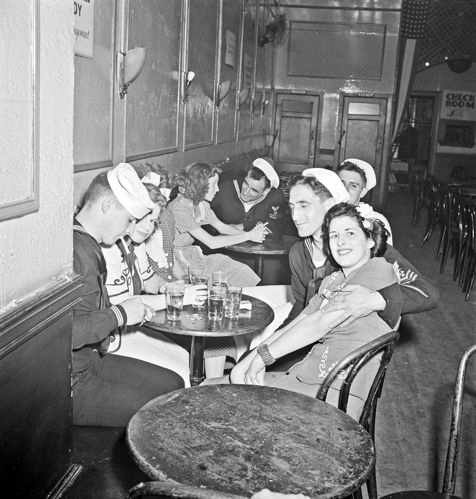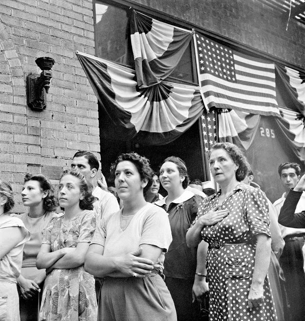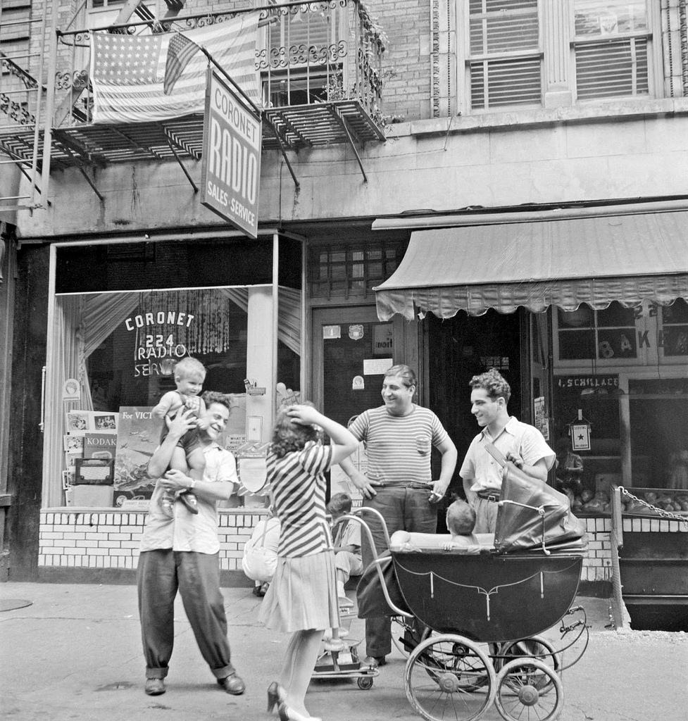 New York. Italian-Americans on MacDougal Street relaxing on Sunday, 1942Washington, D.C. Sunday swimmers at the municipal swimming pool, 1942New York. O’Reilly’s bar on Third Avenue in the ‘Fifties’, 1942Arlington, Virginia. FSA trailer camp project. Hanging out washing in front of the community building, 1942Washington, D.C. Scrap salvage campaign, Victory Program. Washington schoolchild brings a load of scrap paper to school once a week, 1942New York. Italian-Americans watching parade on Mott Street and flag raising ceremony in honor of boys from the neighborhood in the United States Army, 1942New York. Italian-American cafe espresso shop on MacDougal Street where coffee and soft drinks are sold. The coffee machine cost one thousand dollars, 1942Baltimore, Maryland. School children and workers returning home on a trolley at five pm, 1943New York. Waiting room at the Pennsylvania railroad station, 1942New York. Waiting for trains at the Pennsylvania railroad station, 1942Washington, D.C. Watermelon vendor at the farmers’ market, 1942New York. Janet and Marie Wynn (lower left), Czech-American children, climbing on monkey bars in Central Park playground, 1942Washington, D.C. Government workers lunch outside the U.S. Department of Agriculture in Washington Monument park, 1942Washington, D.C. Scrap salvage campaign, Victory Program. Children bringing their weekly contribution of scrap paper to school, 1942New York. The mall restaurant in Central Park on Sunday, 1942Washington, D.C. Municipal swimming pool on Sunday, 1942New York. Italian-Americans in the rain watching a flag raising ceremony in honor of the feast of San Rocco at right, 1942Washington, D.C. Relaxing on the edge of the municipal swimming pool on Sunday, 1942Washington, D.C. Scrap salvage campaign, Victory Program. Children bringing their weekly contribution of scrap paper to school, 1942New York. O’Reilly’s bar on Third Avenue in the ‘Fifties’, 1942