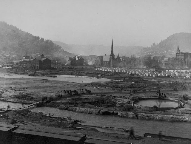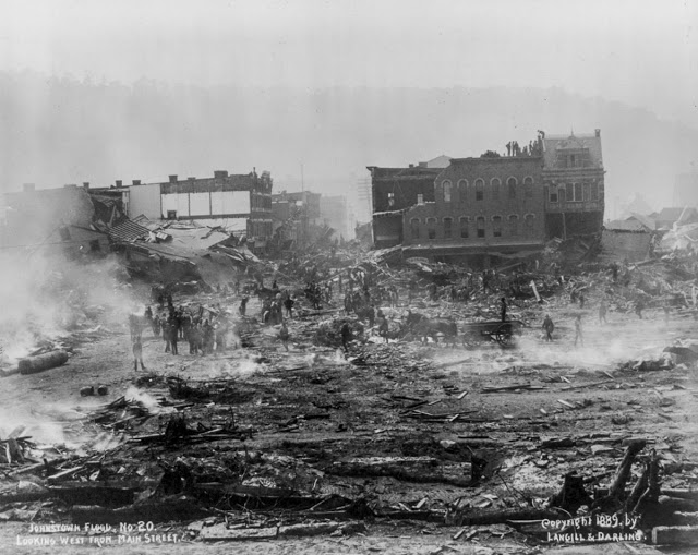 In a river valley in central Pennsylvania, heavy rain and a neglected dam lead to a catastrophe in which 2,209 people die and a prosperous city, Johnstown, is nearly wiped off the face of the earth.