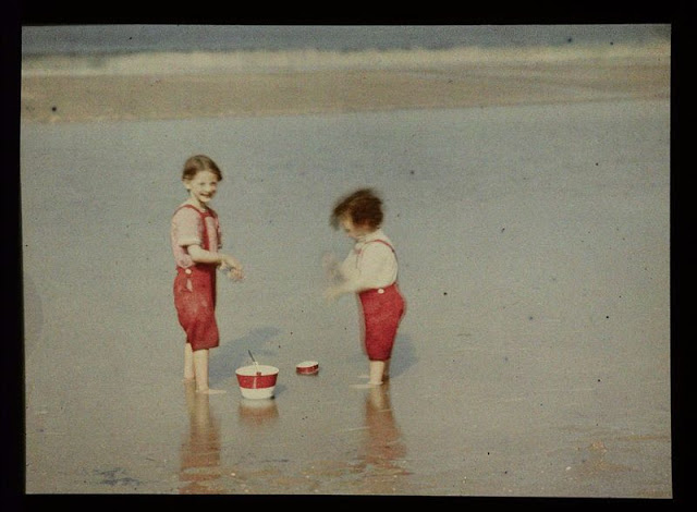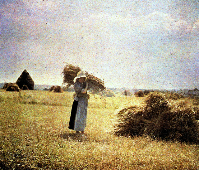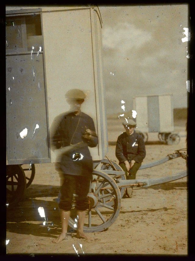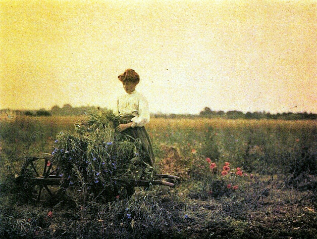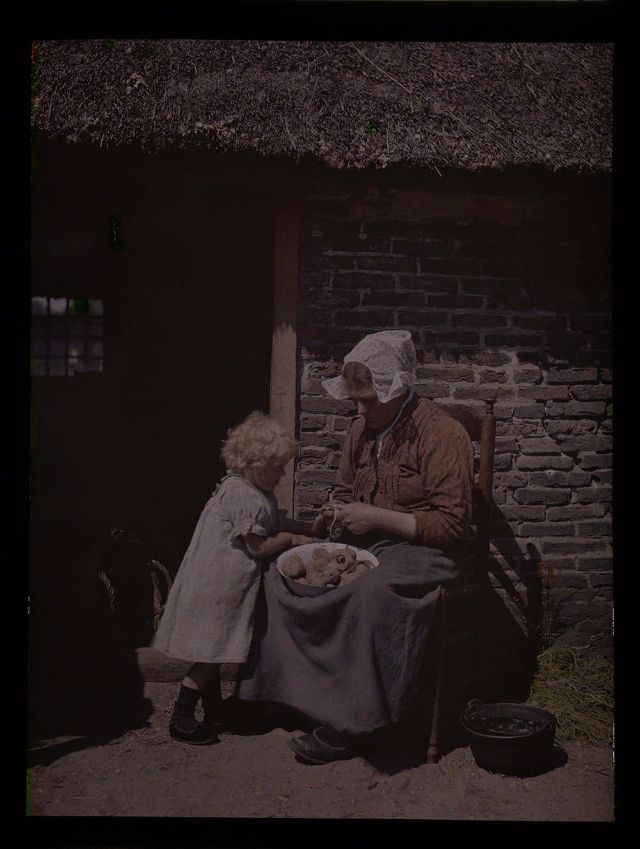 In 1907, the two French brothers August and Louis Lumière invented a technique with which real color photographs could be made, the Autochrome Lumière. It was a very ingenious process that used glass plates on which a layer of microscopically colored potato starch granules were applied.