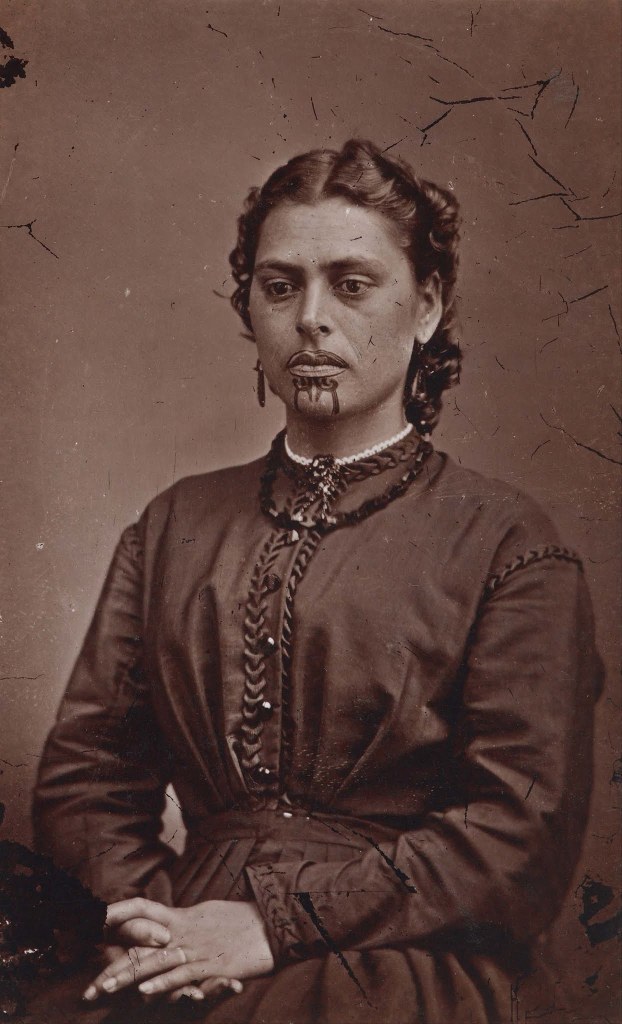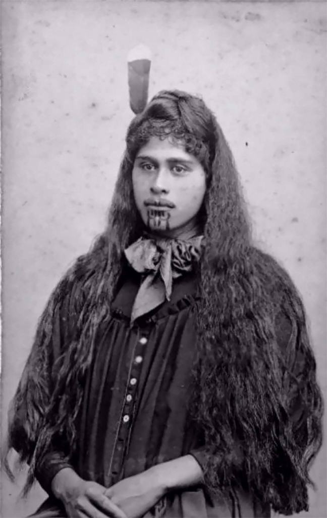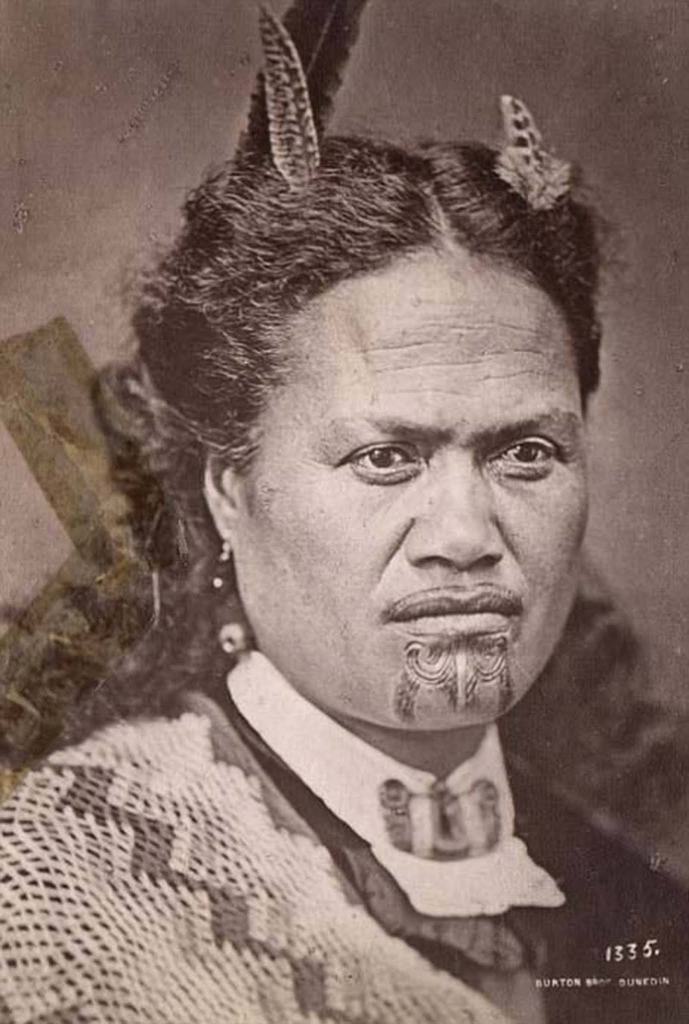 Two Maori girls with chin mokos in an ancient greeting, circa 1900.This photo shows Monika Ruke. She has a chin moko and is wearing feathers in her hair and earrings. A feather cloak with a taniko border is wrapped about her shoulders.An unidentified Maori woman with a chin moko, feathers in her hair, and European clothing, taken around 1895.This stunning portrait from the 1890s shows an elderly Maori woman with intricate markings across her face.An unidentified elderly Maori woman with a lip and chin moko and a scarf taken around 1895.An unknown Maori woman with a chin moko, circa 1890s.Susan Rotorua, a young Maori woman with a tiki around her neck, circa 1890s.Head-and-shoulders portrait of a Maori, facing front, in native clothing, circa 1890s.A Maori woman wearing a korowai (tag cloak), probably associated with the Pai Marire party, taken in the 1870s.An unidentified Maori woman in a top hat shows off her chin moko. The photo is believed to date from around the 1890s.These long-haired Maori women are wearing Maori kiwi cloaks, tiki (greenstone ornaments), and are holding traditional weapons. The woman on the right is seen with a chin moko.A carte de visite portrait of beautiful Maori woman Beti Karaitiana with a chin moko circa 1870s.Portrait of a Maori woman and child from Hawkes Bay, New Zealand, taken between 1880 and 1900.Portrait of a Maori woman from Hawkes Bay, New Zealand, circa 1870sA striking portrait of Irini Kemara, a young Maori woman with the words ‘Pera’ and ‘Kemara’ tattooed on her left arm, taken in July 1888A portrait of Susan Jury, taken by Grand & Dunlop of Christchurch, circa 1890s.Arihi Te Nahu of Te Hauke, a Maori woman, wearing a kahu huruhuru (feather cloak), taken on 16 December 1892.An unidentified Maori woman with a chin moko, circa 1890s.An unidentified Maori woman with a chin moko, circa 1890s.Pikau Teimana of Putaruru, wearing a piupiu and with the words ‘Aohau Taute’ tattooed on her right arm. She is wearing two huia feathers in her hair, and two pendants in the shape of fish around her neck.Karaitiana Takamoana, a Maori woman with a chin moko, taken on 14 November 1878.An unidentified Maori woman with a chin moko, circa 1890s.An unidentified Maori woman with a chin moko from Denedin, New Zealand, circa 1890s.Julia, a Maori woman from the Hawkes Bay district, taken on 23 November 1888.Portrait of Makire Pikihuia, wearing a korowai, taken on 17 December 1892.An unidentified Maori woman with a chin moko, circa 1890s.