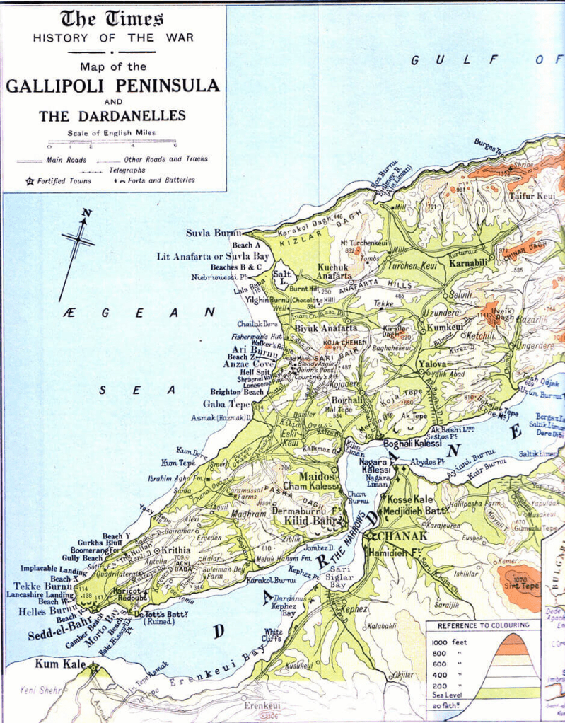 The Gallipoli campaign, also known as the Dardanelles campaign, the Battle of Gallipoli or the Battle of Çanakkale (Turkish: Çanakkale Savasi), was a campaign of the First World War that took place on the Gallipoli peninsula (Gelibolu in modern Turkey), from 17 February 1915 to 9 January 1916. The Entente powers, Britain, France and the Russian Empire, sought to weaken the Ottoman Empire, one of the Central Powers, by taking control of the straits that provided a supply route to Russia. The Allies’ attack on Ottoman forts at the entrance of the Dardanelles in February 1915 failed and was followed by an amphibious landing on the Gallipoli peninsula in April 1915 to capture the Ottoman capital of Constantinople (Istanbul).