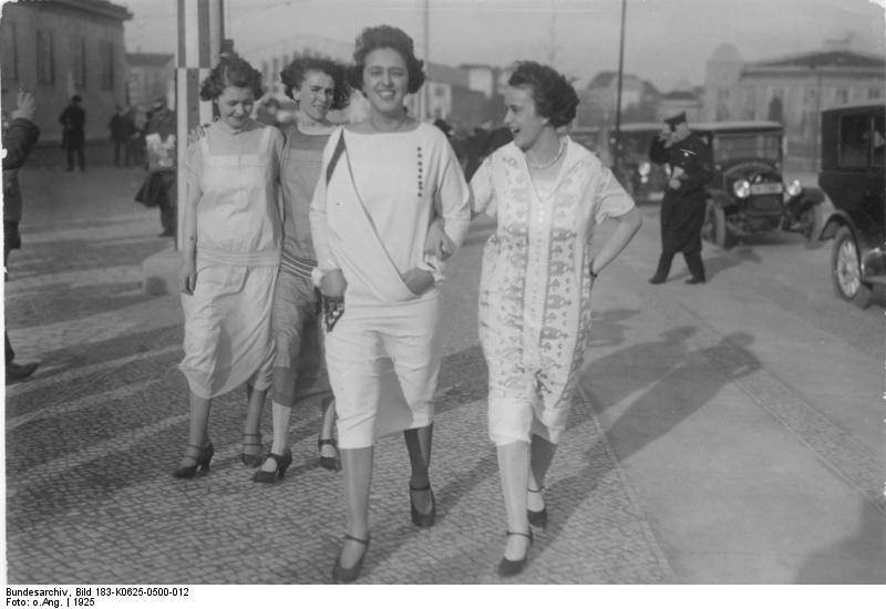 The Dolly Sisters (Jenny and Rosie), Paris, 1924, Modeling ‘Bulldog’ Collars by Marthe Regnier.A woman can be seen wearing a snakeskin outfit coordinated with her car interior, circa 1927.The Dolly Sisters (Jenny and Rosie), in ‘Paris Sans Voiles’ at the Ambassadeurs Theatre, Paris, 1923.Mistinguett in ‘La Revue Mistinguett’, Moulin Rouge, 1925.This window display at McCormick-Saeltzer department store in Redding, California, shows what bathing suits looked like circa 1925.French tennis player Suzanne Lenglen can be seen wearing a Patou outfit and her trademark bandeau headwear, which became part of mainstream fashion in the 1920s.French actress Andrée Spinelly can be seen in 1927 performing in Paris in a sparkly costume and headdress.Rudolph Valentino and Natasha Rambova, New York, 1922.Norma and Constance Talmadge, 1922.A young woman in dress during the Jazz Age in America.This Jean Patou dress, dating back to 1921, made out of georgette crepe and featuring a fringed waist, is modelled by the dancer Madame Lubovska.Edward, Prince of Wales, is featured circa 1925 wearing an informal lounge suit along with a straw boater.Showgirl Dolores Costello in 1919. She was a star of the Ziegfeld Follies and a leading influence on fashion.These four men, photographed in America in 1921, illustrate the transitionary period in men’s fashion; from the Edwardian-era high collars on the men in the middle to the less formal, waistcoat-less style of the man on the left.These men and women can be seen in 1929 in America, wearing almost identical bathing suits.Louise Brooks, Prix De Beaute, 1929.Beatrice Pratt as Isis.Bessie Love, 1925.Fred and Adele Astaire on the set of Lady Be Good, 1926.Gertrude Lawrence and Noel Coward in London Calling, 1923.Gilda Gray. 1925.Norma Talmadge, 1922.Anita Page, 1929Anna May Wong, 1928Bebe Daniels, 1925Billie Dove, 1927Dolores Costello, 1928Gloria Swanson, 1922Jacqueline Logan, 1928Lili Damita, 1925