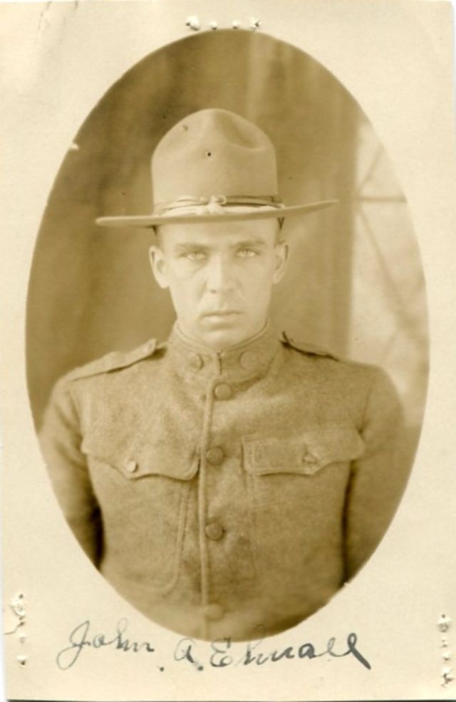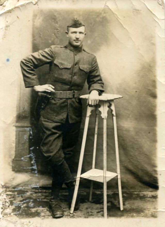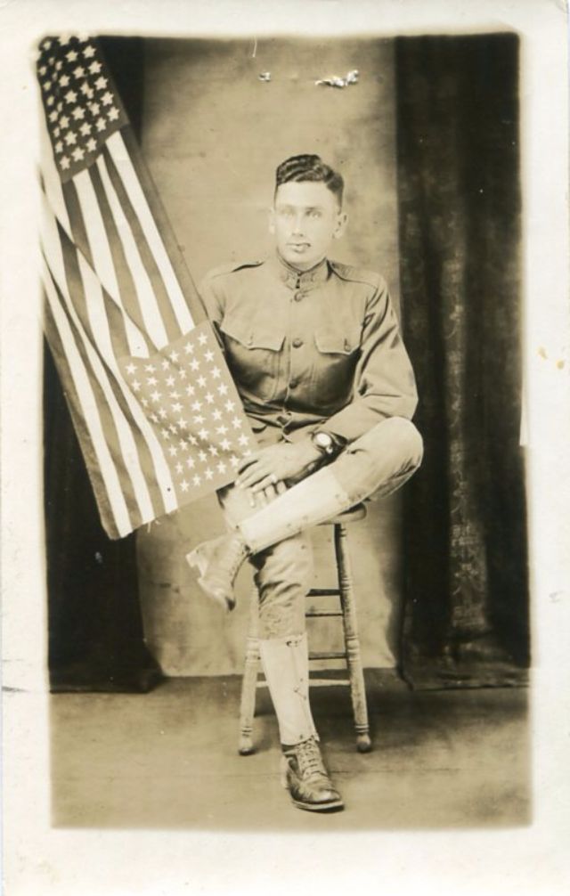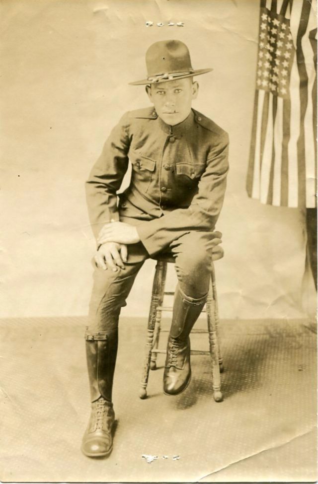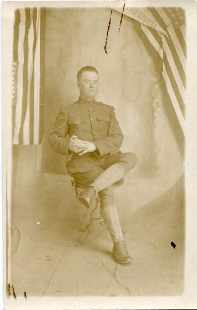 Bert R. Blythe of Tarboro, N.C., sitting in a chair in his Army uniform, holding onto the corner of an American flag, served in the 156th Depot Brigade and Company M, 321st Infantry.Brady N. Burleyson of Albemarle, N.C in his U.S. Army uniform, leaning against a stand, served in 322nd Infantry, 81st Division.Burnwell C. Jackson from Kinston, N.C., wearing his U.S. Army uniform, was killed on July 20, 1918, in Soissons, France, after being shot by a machine gun three times.Capt. Wallace Whitfield Riddick Sr., of West Raleigh, N.C., served as a U.S. Army engineer with the 105th Engineers and the 115th Field Artillery, 30th Division, in France.Captain Frank S. Spruill from Rocky Mount, N.C., wearing his U.S. Army uniform, served as a Captain in Company B, 52nd Infantry, 6th Division.Captain Thomas Park, served in the U.S. Army during World War I.Charles E. Hughes from Elizabeth City, N.C., wearing his U.S. Navy uniform, joined the U.S. Navy when he was just 16 years old in April 1917.Charles J. Bailey, wearing his full U.S. Army uniform and hat, served as Major General of the 81st Division.Chester Noah from Surry County, N.C. in his U.S. Army uniform., served in Company E, 321st Infantry, 81st Division.Clarence E. Midgett of Rodanthe, N.C., served as a Surfman as the U.S. Coast Guard at Station 179.Clifton Pittman, seated and wearing his U.S. Army uniform, served in the 81st Division.Clyde Cockerham from Surry County, N.C, served in the U.S. Navy as a Seaman 2nd Class.Colonel Holmes B. Springs, wearing his U.S. Army uniform, served as an officer in the 30th Division, in command of many North Carolinians.Colonel Paul C. Hutton from Goldsboro, N.C., served in U.S. Army Medical Department.Corp. William S. Gardner from Duplin County, N.C. in his U.S. Army uniform, served in Company G, 16th Infantry, 1st Division, died on July 29, 1918, in France.Corporal Kinchen C. Knight, of Whitakers, N.C., served in Company B of the 321 Infantry of the U.S. Army during World War I.David K. Merritt of Raleigh, N.C., wearing his U.S. Army uniform, served in Company L, 5th Pioneer Infantry, and in Company F, 56th Pioneer Infantry.Dewey A. Williams of Stanly County, N.C. in his Army uniform, served in the 38th Infantry, 3rd Division, was killed in action in France on July 18, 1918.Edgar H. Bain of Goldsboro, N.C., wearing a suit and bow tie, served in the 119th Infantry, 30th Division.Edward D. Bryan of Tarboro, N.C., served as Second Lieutenant with the 155 Depot Brigade, U.S. Army.Edward L. Pitt of Wilson County, N.C., wearing his U.S. Army uniform and campaign hat, with a hand-painted backdrop, served in the 156th Depot Brigade.Edward Theodore Quigley in the U.S. Navy uniform, served aboard the U.S. Navy battleship USS Mississippi.Elmus E. Baker of Tarboro, N.C. in his Army uniform with an American flag in the background, served in Co. B, 322nd Infantry, and 317th Ambulance Company, in France.G. M. O’Neil seated in a chair, wearing his U.S. Navy uniform and hat, served as a Fireman First Class in the U.S. Navy.Grady C. Stone of Surry County, N.C., served in the U.S. Army in the 156th Depot Brigade, and in Company K, 324th Infantry, 81st Division.Harvey R. Harris from Vance County, N.C., wearing his U.S. Army uniform, posing in front of a hand-painted backdrop, served in Company L, 321st Infantry, 81st Division.Haywood Maurice Taylor of Tarboro, N.C., wearing his U.S. Army uniform and officer’s hat, served on the home front as a 2nd Lieutenant.Henry G. Simpson from Wake Forest, N.C. in front of a hand-painted backdrop, served in the Headquarters Company, 316th Field Artillery, 81st Division.Howard L. Strohl, wearing his U.S. Army uniform, served in the 109th Machine Gun Battalion, 28th Division, was killed in action in Fismes, France, on August 8, 1918.Isaac G. Wilson of Trenton, N.C., wearing his Army uniform, served in Company E, 321st Infantry, 81st Division, and Company K, 119th Infantry, 30th Division.J. Leslie Stillman from Cherokee County, N.C., dressed in a suit and tie, served in Company G, 119th Infantry,30th Division, was killed from shrapnel in Belgium on July 26, 1918.James H. Baugham of Washington, N.C., wearing a heavy wool military coat over his military uniform, served as an aviator with the Lafayette Escadrille, and died in combat on July 2, 1918.James H. Graham, wearing his U.S. Army uniform and campaign hat, served in Company J, 127th Infantry, 32nd Division, was killed in action in Europe on August 6, 1918.James Hodges from Tarboro, N.C., seated on a bench, wearing his U.S. Navy uniform, served on the U.S. Navy battleship USS Alabama (BB-8).Jesse M. Avery from Harnett County, N.C., seated wearing his U.S. Army uniform, with American flags draped in the background, served in Company M, 119th Infantry, 30th Division.John A. Elmore from Selma, N.C. in his U.S. Army uniform and campaign hat, served in the 322nd Infantry, 81st Division.John Burt Exum Jr. from Wayne County, N.C., wearing his U.S. Army uniform, served during much of World War I in a Motor Battalion in Company D, 306th Ammunition Train, 81st Division.John E. King from Asheboro, N.C., wearing his dress Army uniform, served in two companies within the 18th Infantry, was killed in France on June 2, 1918.John E. Ray Jr., of Raleigh, N.C., wearing his U.S. Army uniform, served in the Medical Corps, 119th Infantry, 30th Division, was killed in combat on October 5, 1918.John N. Harrell of Raleigh, N.C., wearing his U.S. Army infantry uniform, served as captain in the U.S. Army Quartermaster Corps during World War I.John T. Ring from Kernersville, N.C., served as a Corporal in 97th Company, 6th Marine Regiment, U.S. Marine Corps, was killed in action from shrapnel on July 19, 1918, at Tigny, France.Joseph D. Boushall of Raleigh, N.C., wearing his Army Air Service uniform, served in the Army Air Service, primarily stationed at Eberts Field in Arkansas.Joseph Edward Stephenson of Halifax, N.C, volunteered at age 19 for the U.S. Navy, se