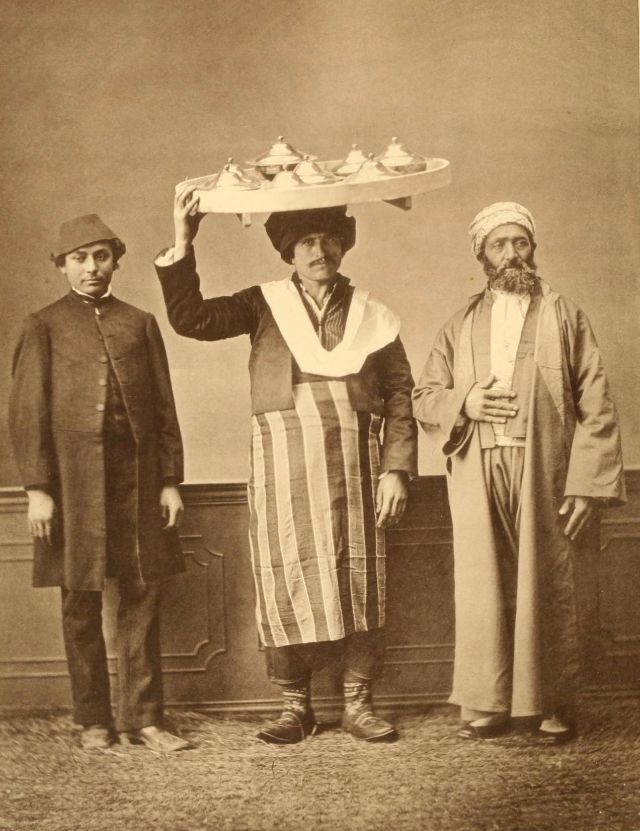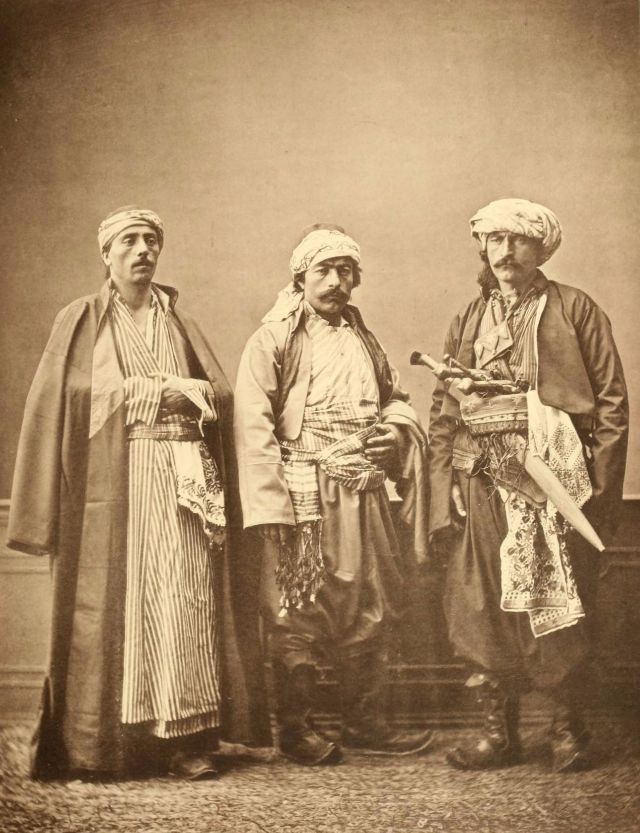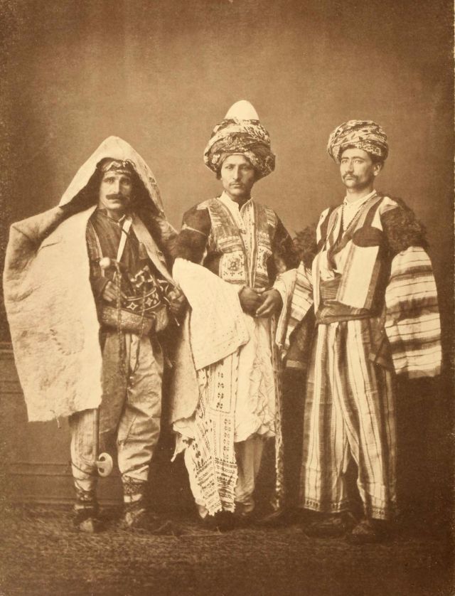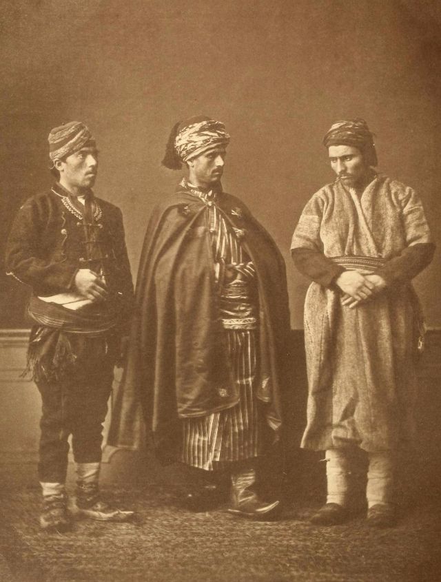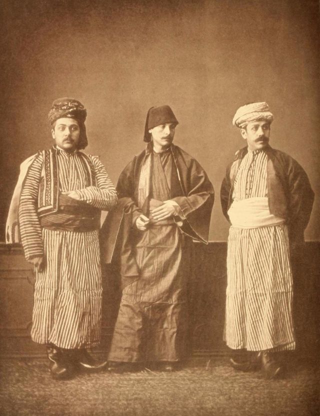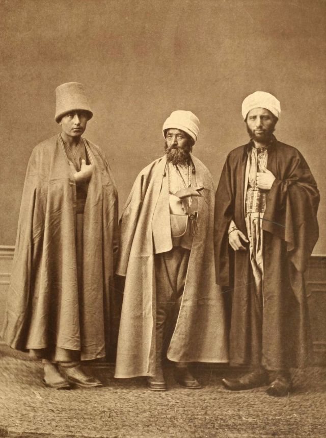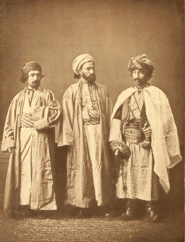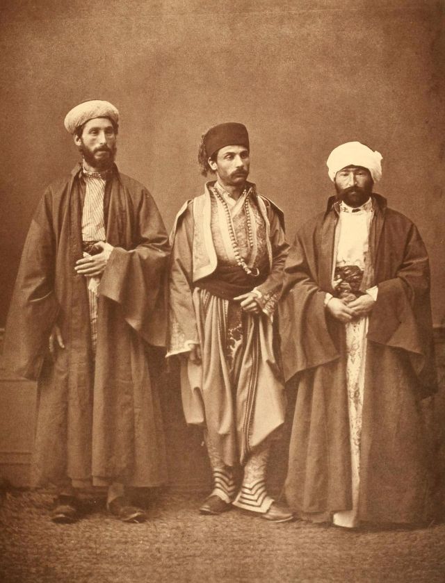 In this period men wore outer items such as ‘mintan’ (a vest or short jacket), ‘zibin’, ‘salvar’ (trousers), ‘kusak’ (a sash), ‘potur’, ‘entari’ (a long robe), ‘kalpak’, ‘sarik’ on the head; ‘çarik’, ‘çizme’, ‘çedik’, ‘Yemeni’ on the feet. The administrators and the wealthy wore caftans with fur lining and embroidery, whereas the middle class wore ‘cübbe’ (a mid-length robe) and ‘hirka’ (a short robe or tunic), and the poor wore collarless ‘cepken’ or ‘yelek’ (vest).