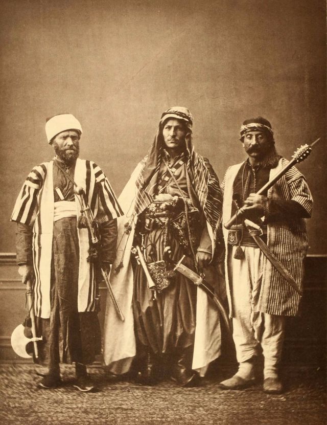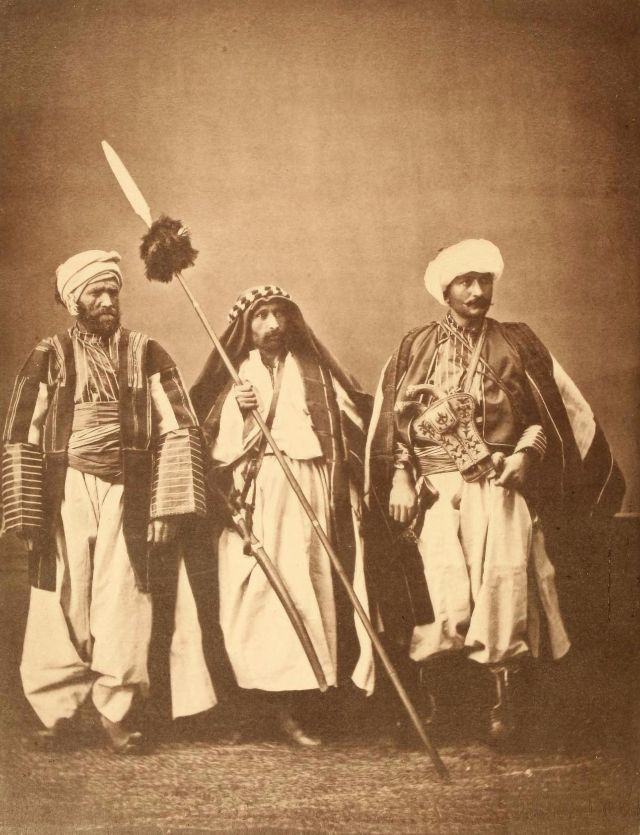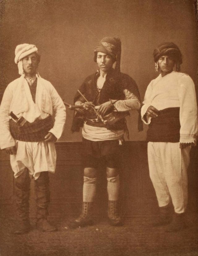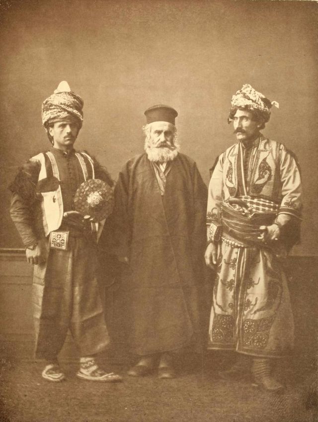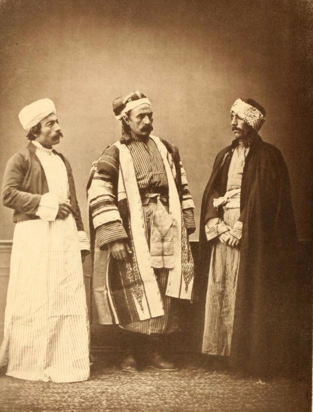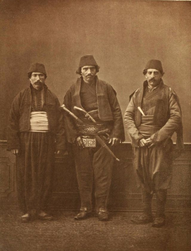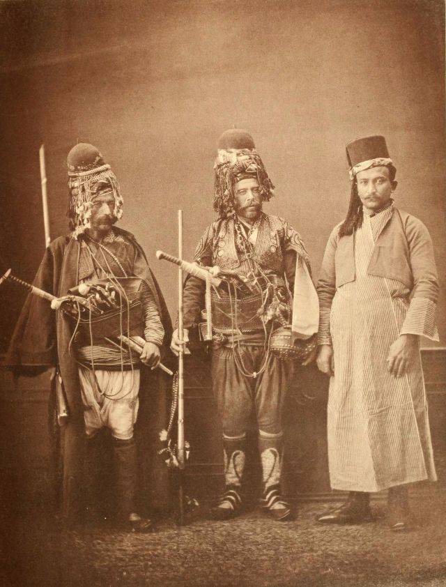 In this period men wore outer items such as ‘mintan’ (a vest or short jacket), ‘zibin’, ‘salvar’ (trousers), ‘kusak’ (a sash), ‘potur’, ‘entari’ (a long robe), ‘kalpak’, ‘sarik’ on the head; ‘çarik’, ‘çizme’, ‘çedik’, ‘Yemeni’ on the feet. The administrators and the wealthy wore caftans with fur lining and embroidery, whereas the middle class wore ‘cübbe’ (a mid-length robe) and ‘hirka’ (a short robe or tunic), and the poor wore collarless ‘cepken’ or ‘yelek’ (vest).