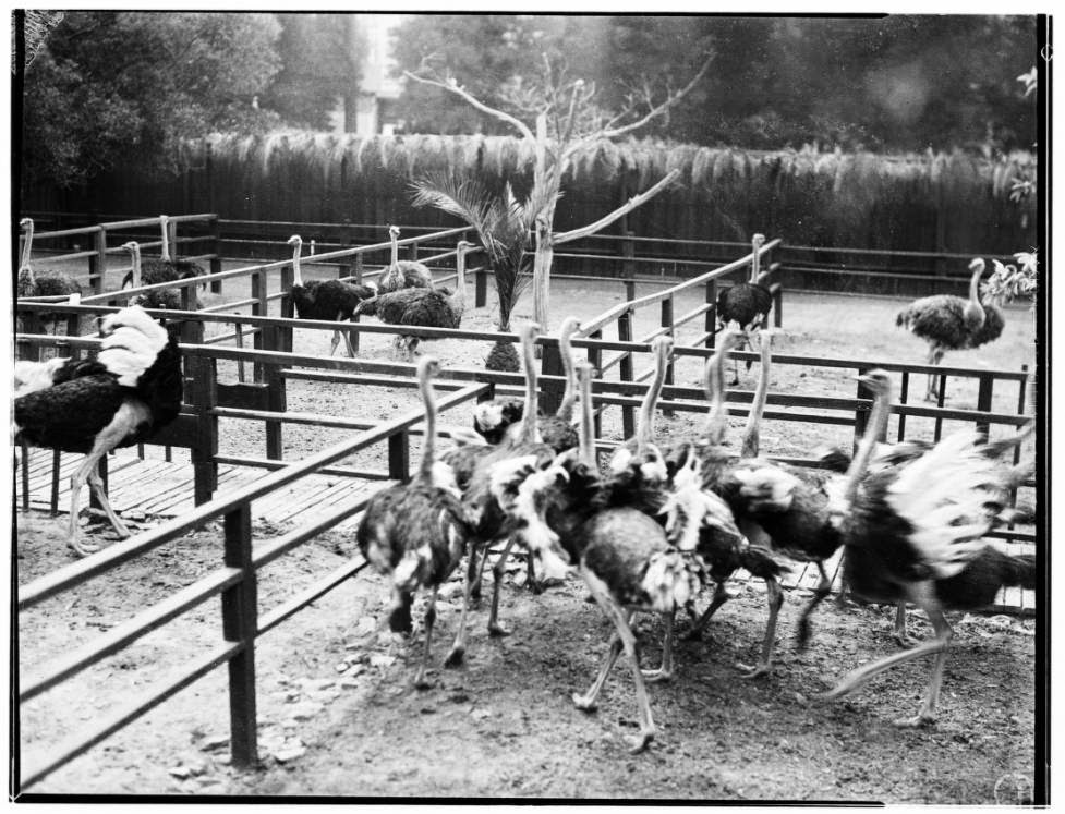 Ostriches arrived in Southern California in 1883 when an English naturalist named Charles Sketchley opened a farm devoted to the tall, flightless birds near Anaheim, in what is today Buena Park. Sketchley’s investors, who included developer Gaylord Wilshire (of Wilshire Boulevard fame), organized as the California Ostrich Farming Company and contributed $80,000 to the enterprise.