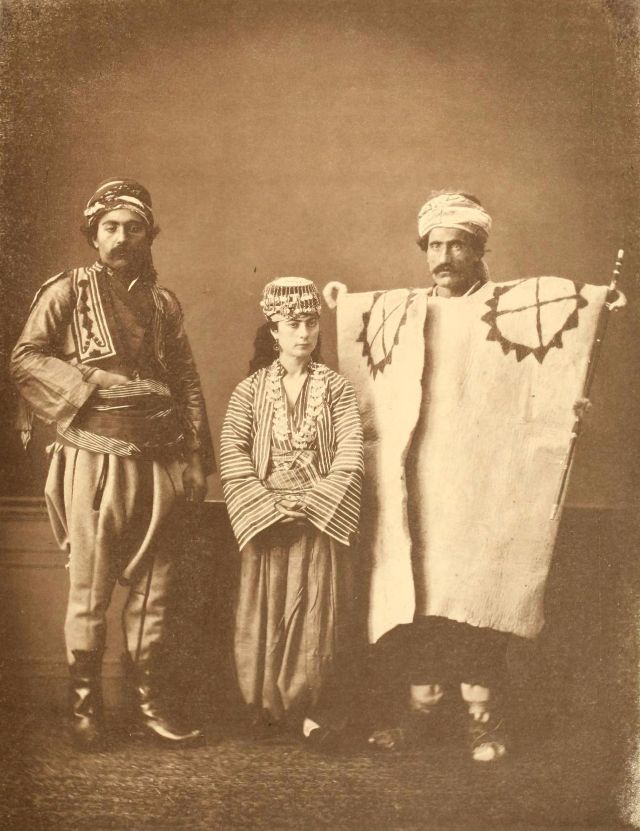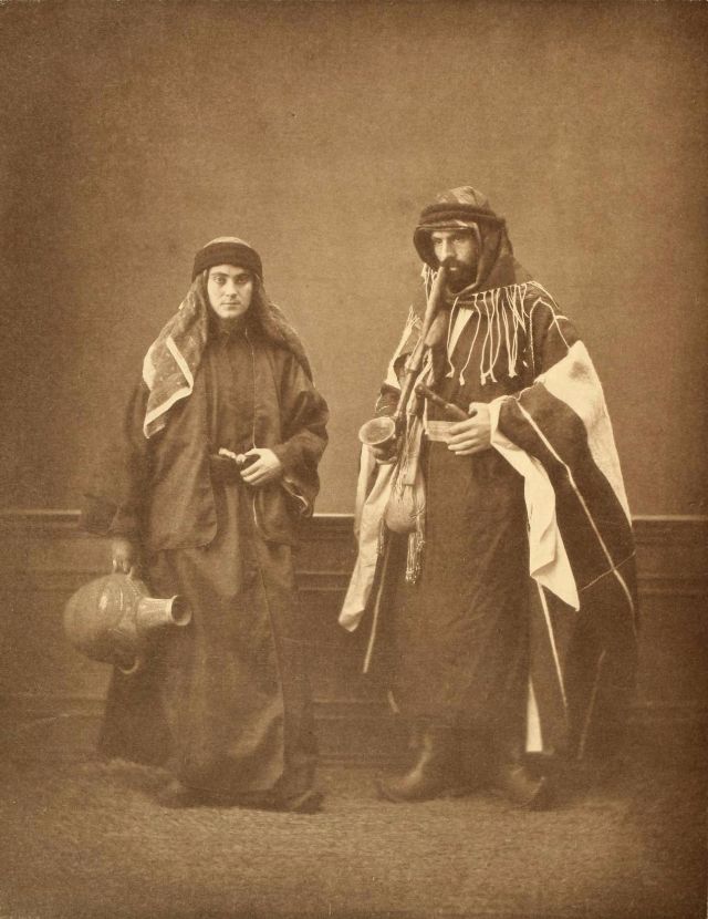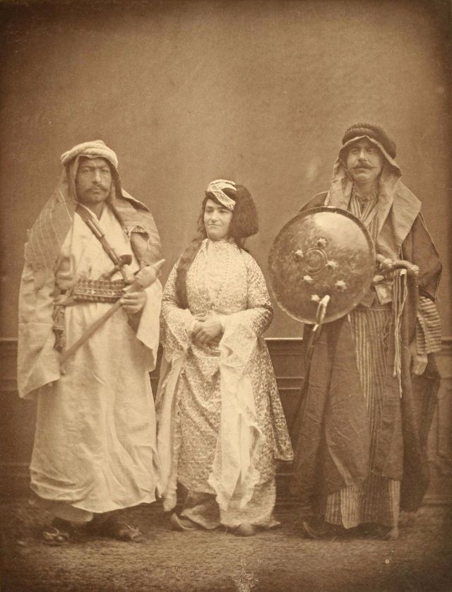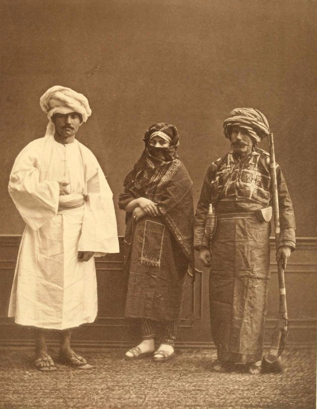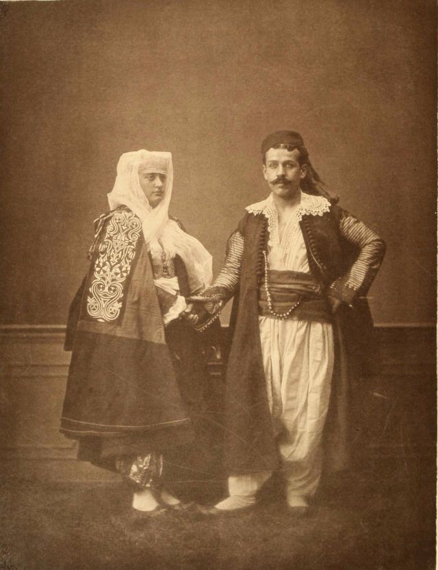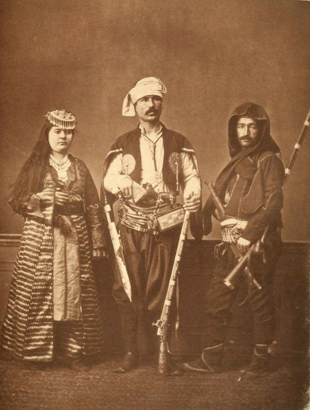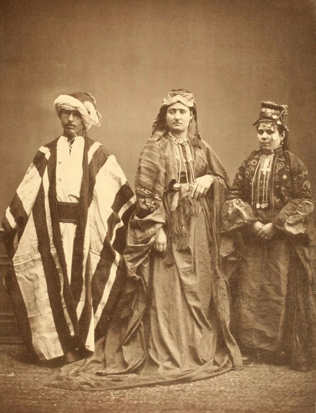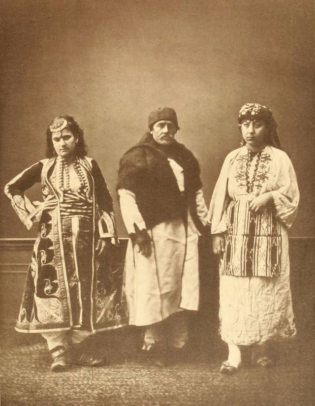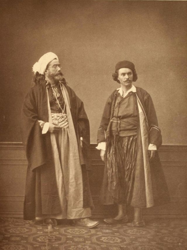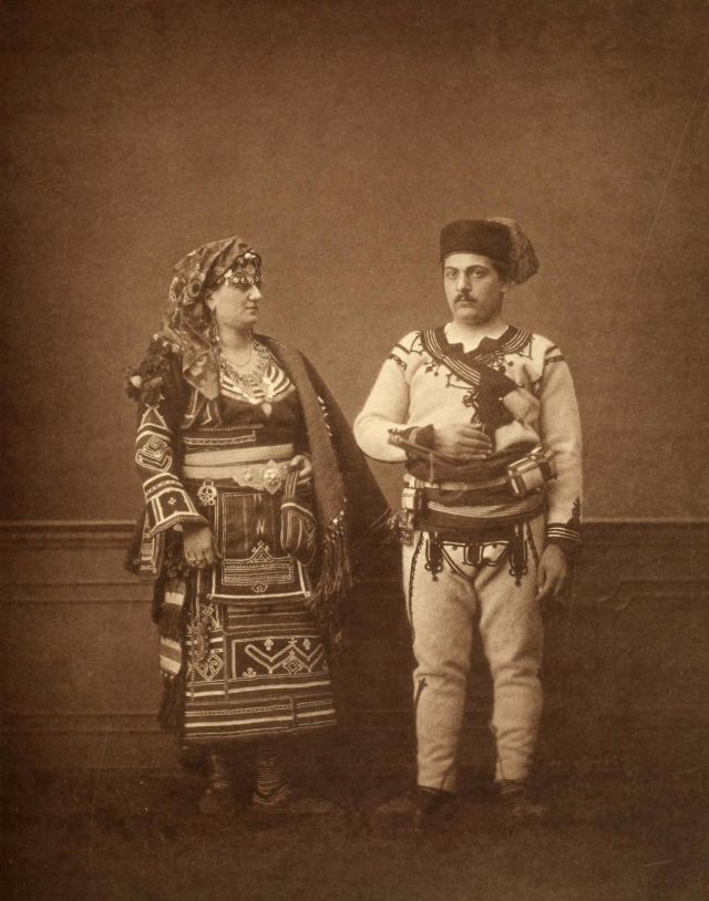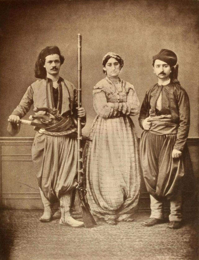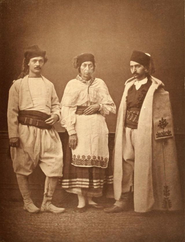 Women’s everyday wear was salvar (trousers), a gömlek (chemise) that came down to the mid-calf or ankle, a short, fitted jacket called a hirka, and a sash or belt tied at or just below the waist. For formal occasions, such as visiting friends, the woman added an entari, a long robe that was cut like the hirka apart from the length. Both hirka and entari were buttoned to the waist, leaving the skirts open in front. Both garments also had buttons all the way to the throat, but were often buttoned only to the underside of the bust, leaving the garments to gape open over the bust. All of these clothes could be brightly colored and patterned. However, when a woman left the house, she covered her clothes with a ferace, a dark, modestly cut robe that buttoned all the way to the throat. She also covered her face with a variety of veils or wraps.