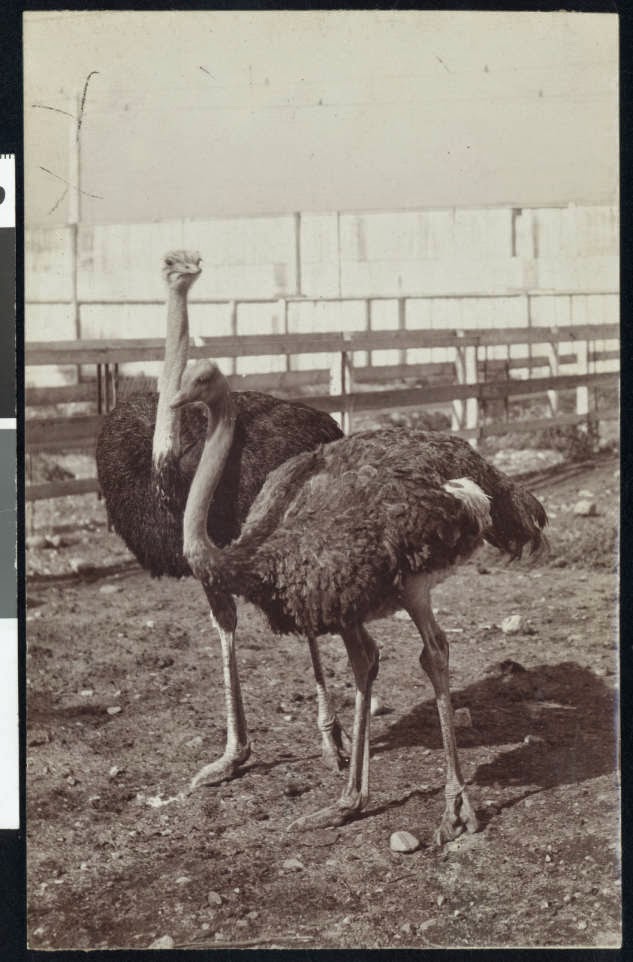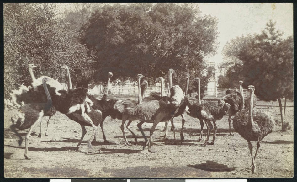The farm — the first of its kind in the U.S. — sought to capitalize on a trend in women’s fashion that favored ostrich feathers for muffs, hats, and boas. Until 1883, only ostrich feathers shipped at great cost from the birds’ native continent of Africa were available for these luxury accessories. Sketchley, who had previous experience managing ostrich farms in South Africa, envisioned fortunes built upon locally sourced ostrich feathers.