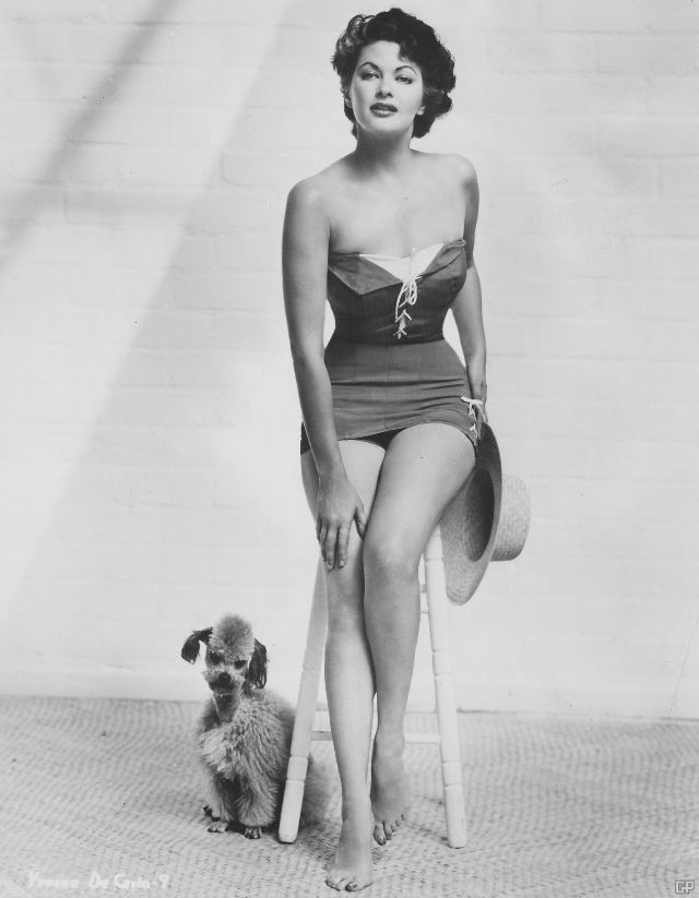 Yvonne De Carlo was a Canadian born American actress, singer, and dancer whose career spanned more than seven decades. A brunette with blue-grey eyes, voluptuous figure, and a deep sultry voice, she was one of most recognizable stars in the golden age of Hollywood and an early multihyphenate.