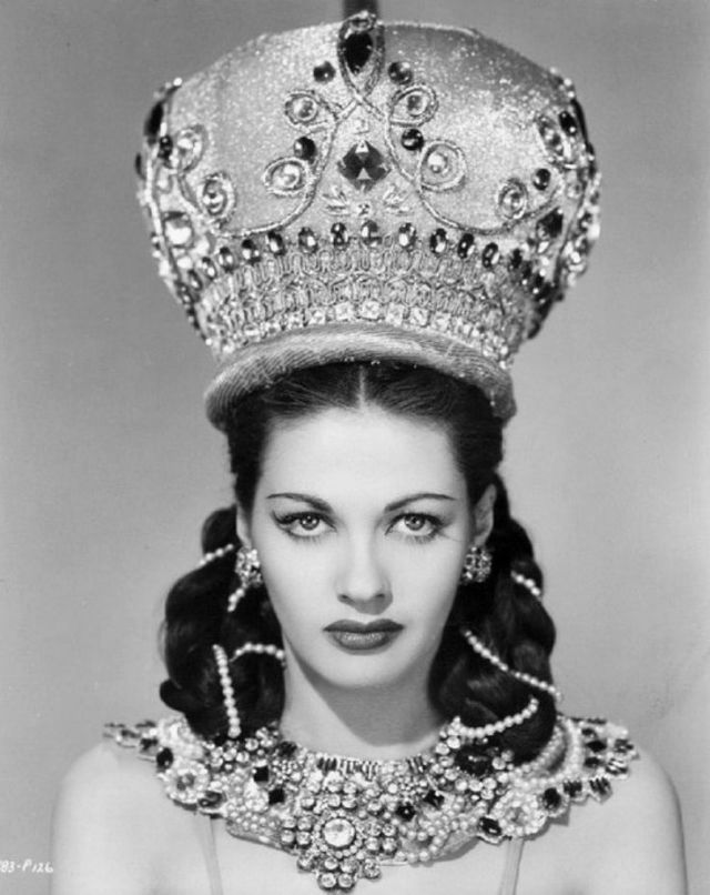 A vibrant, full-bodied performer with a rich voice and a lushly sensuous if somewhat odd beauty, Yvonne De Carlo (1922–2007) achieved stardom in the 1940s in some of the more bizarre escapism of that era.