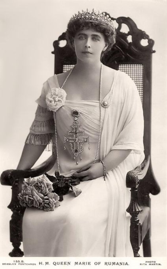 A projected marriage between Marie and her cousin, George of York, the future George V, encouraged by Queen Victoria and supported by their fathers, the Duke of Edinburgh and the Prince of Wales, failed because of the opposition of the young heirs’ mothers, the Duchess of Edinburgh and the Duchess of Wales. Instead, on January 10, 1893 at Sigmaringen Castle, after a brief engagement, Marie married Ferdinand of Hohenzollern-Sigmaringen, the heir to the Romanian throne. In 1914, after the death of King Carol I, Ferdinand and Marie became Romania’s monarchs. In the summer of 1916, Romania entered the First World War as part of the Allied Powers.