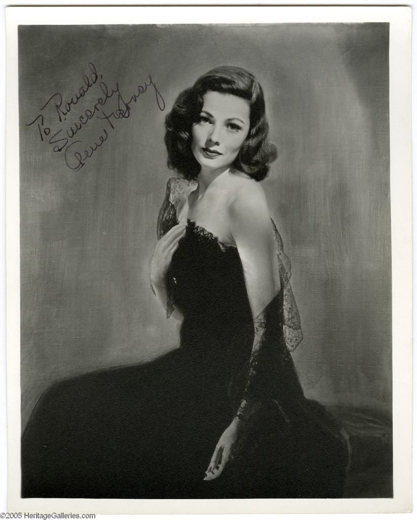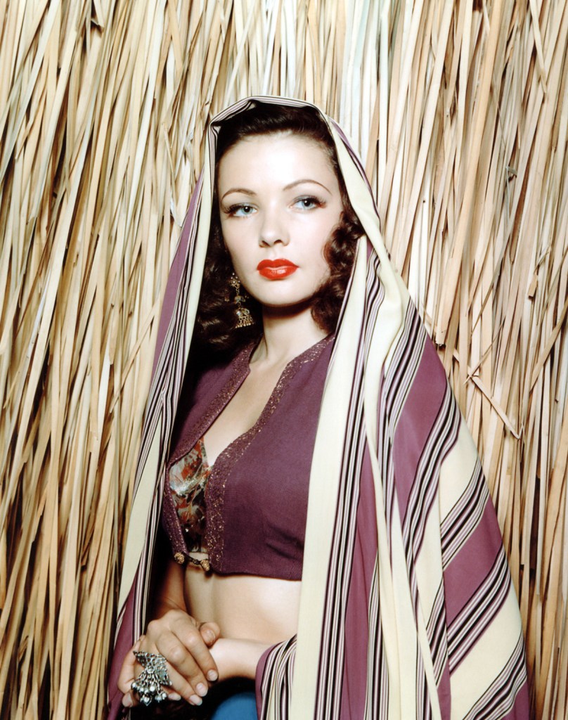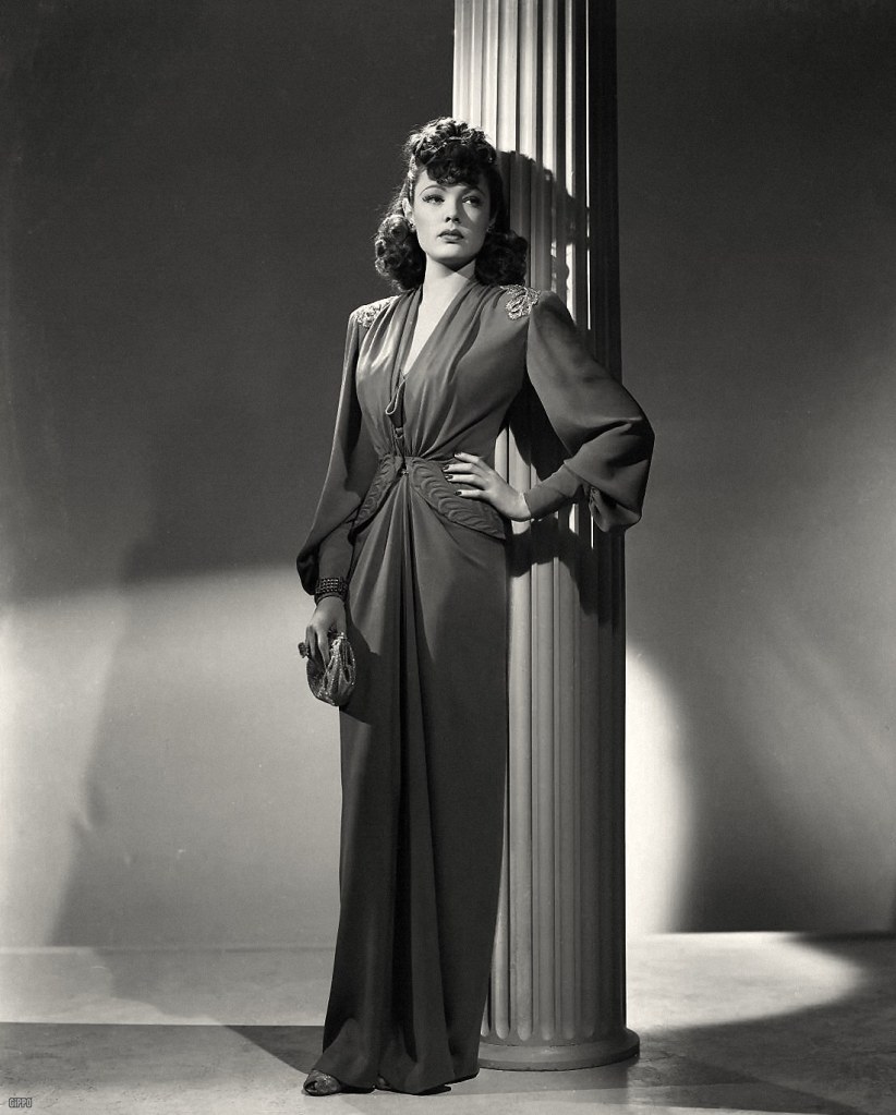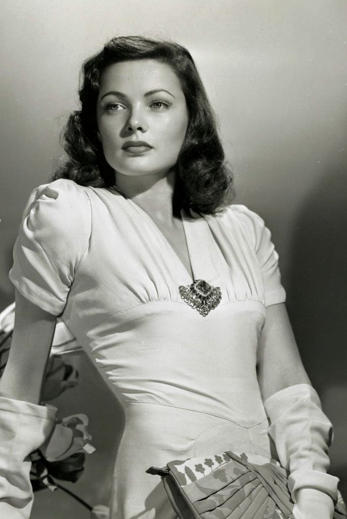 After being spotted by the legendary Darryl F. Zanuck during a stage performance of the hit show The Male Animal (1940), Gene was signed to a contract with 20th Century-Fox. Her first role as Barbara Hall in Hudson’s Bay (1941) would be the send-off vehicle for her career. Later that year she appeared in The Return of Frank James (1940). The next year would prove to be a very busy one for Gene, as she appeared in The Shanghai Gesture (1941), Sundown (1941), Tobacco Road (1941) and Belle Starr (1941). She tried her hand at screwball comedy in Rings on Her Fingers (1942), which was a great success. Her performances in each of these productions were masterful. In 1945 she was nominated for a Best Actress Oscar for her portrayal of Ellen Brent in Leave Her to Heaven (1945). Though she didn’t win, it solidified her position in Hollywood society. She followed up with another great performance as Isabel Bradley in the hit The Razor’s Edge (1946).