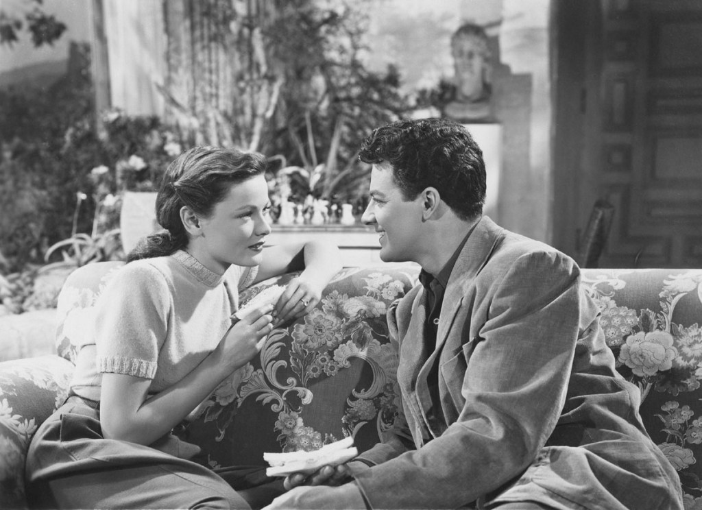 After two years in Europe, Gene returned to the US where she completed her education. By 1938 she was performing on Broadway in What a Life! and understudied for The Primerose Path (1938) at the same time. Her wealthy father set up a corporation that was only to promote her theatrical pursuits. Her first role consisted of carrying a bucket of water across the stage, prompting one critic to announce that “Miss Tierney is, without a doubt, the most beautiful water carrier I have ever seen!” Her subsequent roles Mrs O’Brian Entertains (1939) and RingTwo (1939) were meatier and received praise from the tough New York critics. Critic Richard Watts wrote “I see no reason why Miss Tierney should not have a long and interesting theatrical career, that is if the cinema does not kidnap her away.”
