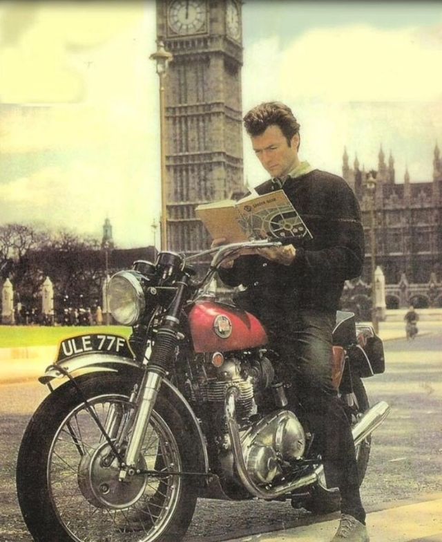 Clint Eastwood was well known for his love of cars and motorcycles in the 1960s and ’70s, he especially loved the British marques Jaguar, Austin Healey and motorcycle marques Norton, Triumph.