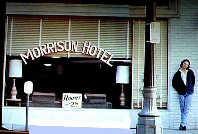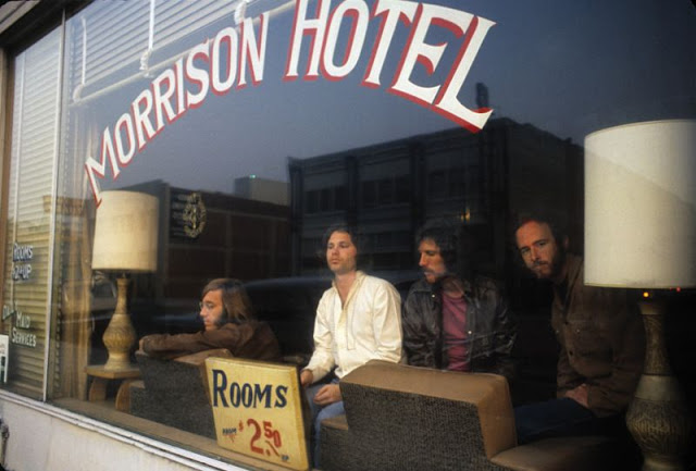 The album’s cover of Morrison Hotel was shot by photographer Henry Diltz through the window of this transient hotel in Los Angeles back in December of 1969. The location was ‘discovered’ by Ray Manzarek and his wife a few days before the shoot. When the group returned with Diltz and approached the desk clerk about taking photos inside the building, they were turned down. So Diltz took several shots of the group outside the building. Eventually the clerk took a break and the group was able to sneak in and take their places inside the window for what would end up as the album cover. Today the hotel sits vacant and is near the Staples Center.