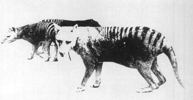The Thylacine, also called Tasmanian tiger because of its striped lower back, or the Tasmanian wolf because of its canid-like characteristics, was neither a tiger nor a wolf, but a marsupial, and closely related to the Tasmanian devil.