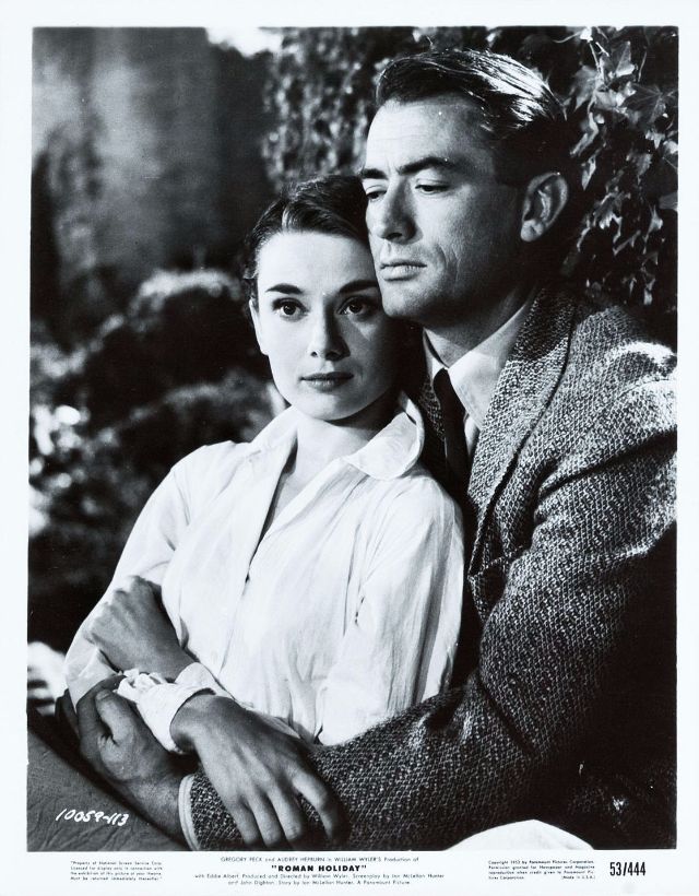 Roman Holiday is a 1953 American romantic comedy film directed and produced by William Wyler. It stars Audrey Hepburn as a princess out to see Rome on her own and Gregory Peck as a reporter. Hepburn won an Academy Award for Best Actress for her performance; the screenplay and costume design also won.