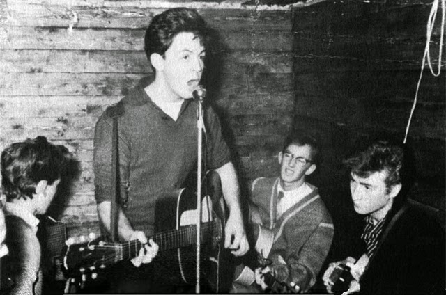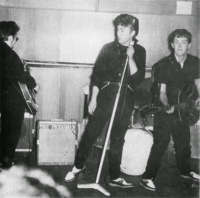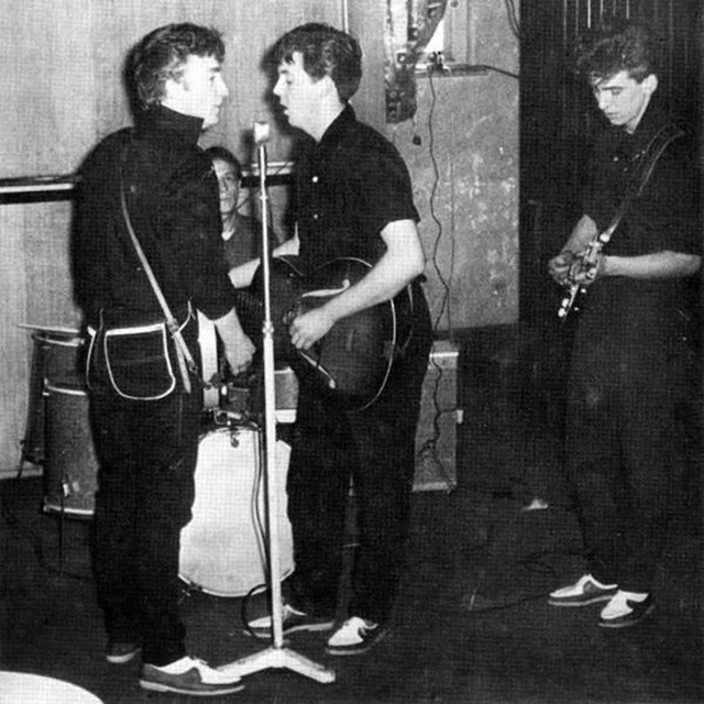 Lennon started a skiffle group that was very briefly called the Blackjacks, but changed the name before any public performances. Some accounts credit Lennon with choosing the new name; other accounts credit his close friend Pete Shotton with suggesting the name. The Quarrymen played at parties, school dances, cinemas and amateur skiffle contests before Paul McCartney joined the band in October 1957. George Harrison joined the band in early 1958 at McCartney’s recommendation, though Lennon initially resisted because he felt Harrison (still 14 when he was first introduced to Lennon) to be too young. Both McCartney and Harrison attended the Liverpool Institute.