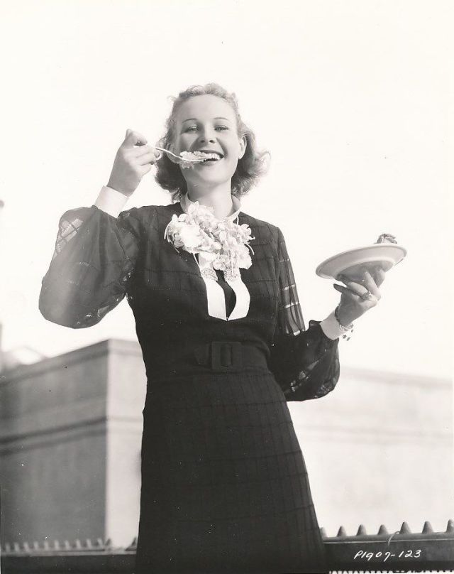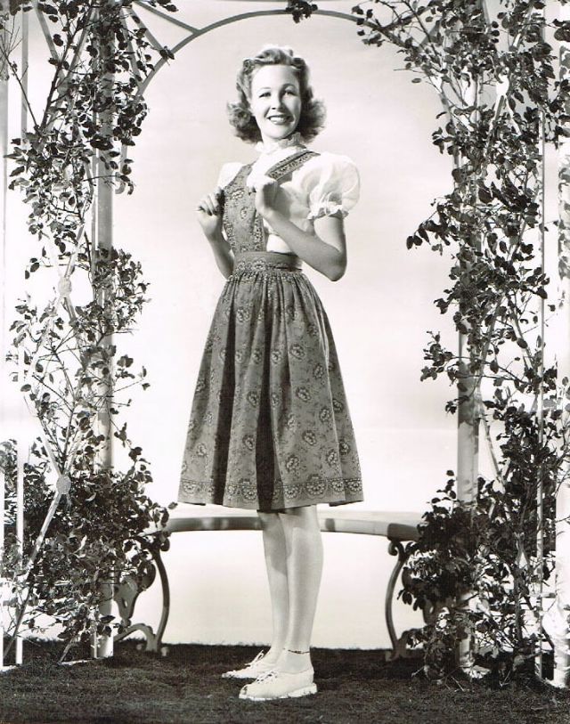Lynn made her film debut playing the piano in They Shall Have Music and was once again back at the keyboard, accompanying Susanna Foster, in There’s Magic in Music. In 1944, she scored an outstanding success in Preston Sturges’ The Miracle of Morgan’s Creek. She appeared in two Henry Aldrich films, and played writer Emily Kimbrough in two films Our Hearts Were Young and Gay and Our Hearts Were Growing Up both co-starring Gail Russell.