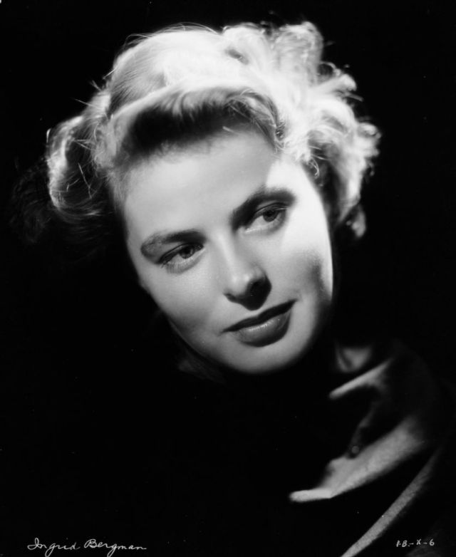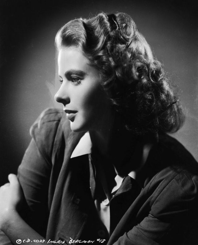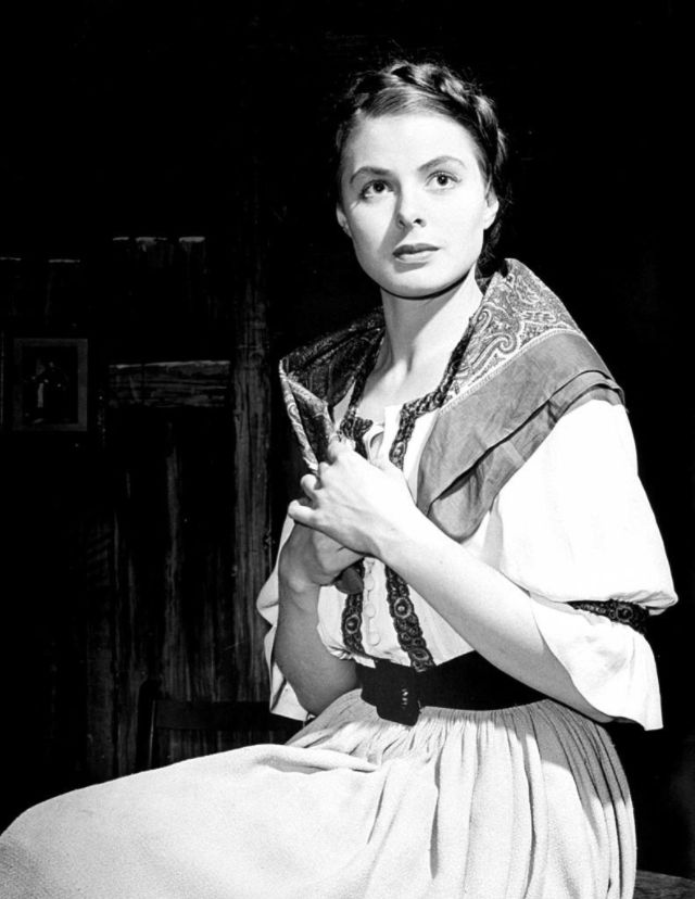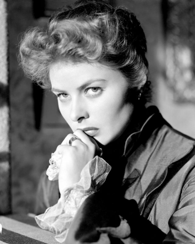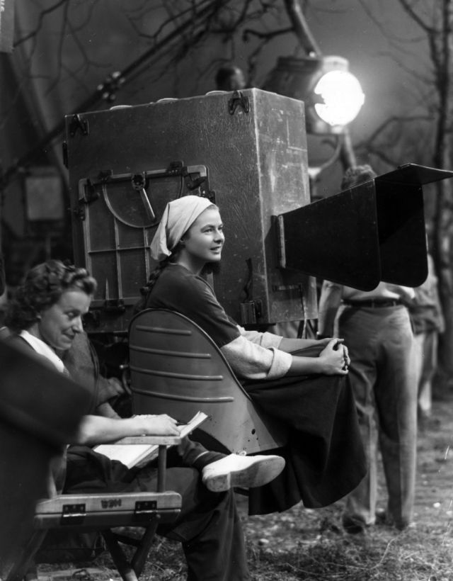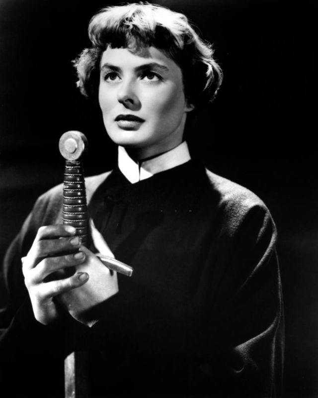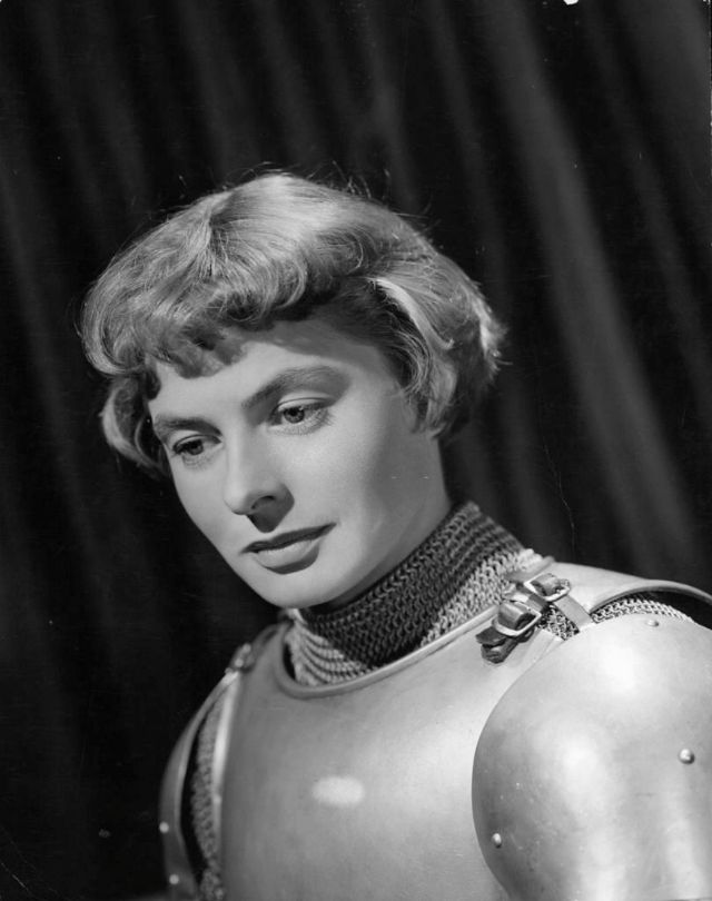 Bergman received her first Oscar nomination for For Whom the Bell Tolls in 1943. Ernest Hemingway himself stated that “Miss Bergman, and no one else, should play the part.” Her performance as a “wife driven close to madness” in Gaslight (1944) won Bergman her first Academy Award. She received her third consecutive Oscar nomination for her role as a nun in The Bells of St. Mary’s in 1945. That same year Bergman also appeared in Spellbound, the first of her three collaborations with Alfred Hitchcock. Notorious, her second film with Hitchcock, was released in 1946. Bergman won a Tony Award for her performance in Joan of Lorraine in 1947. Joan of Arc (1948), the movie adaptation of the play, would later earn her another Oscar nomination. Bergman’s last film of the decade, also the last of her collaboration with Hitchcock, was Under Capricorn (1949).