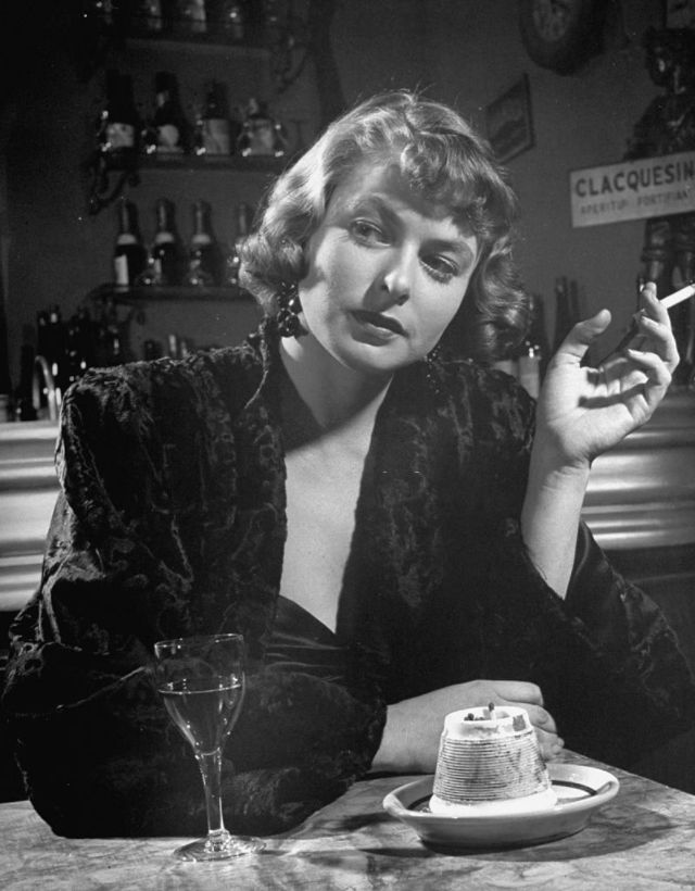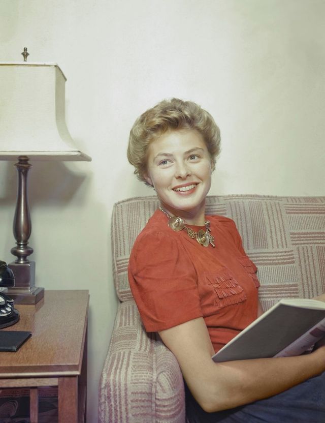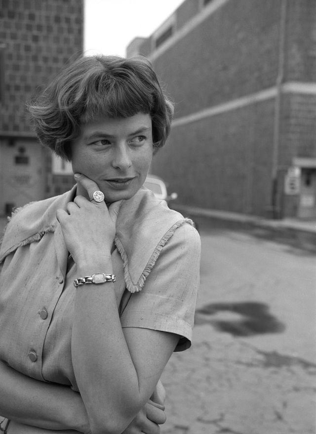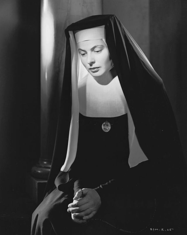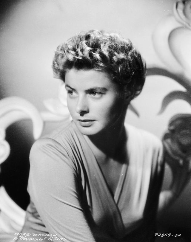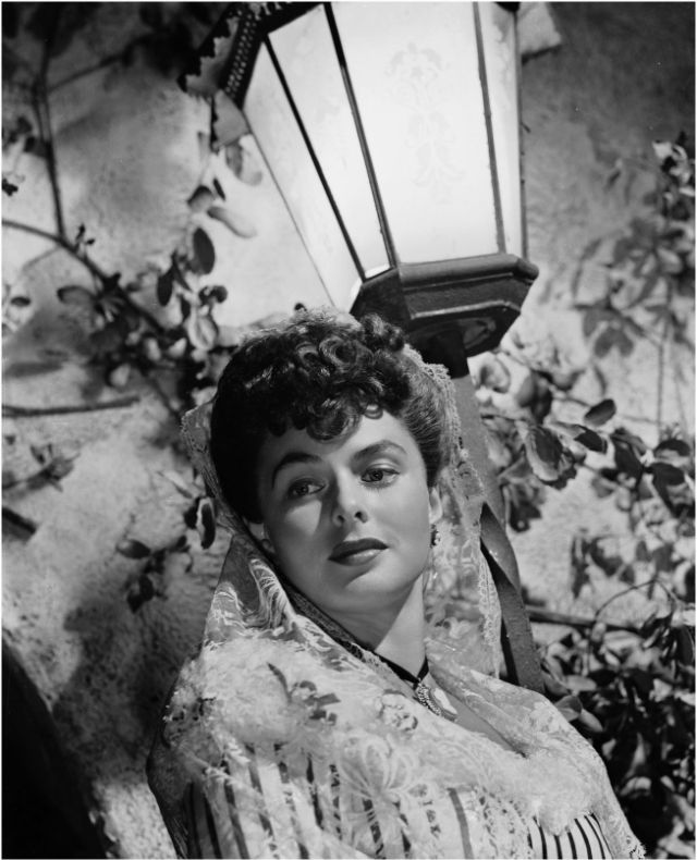 Bergman received her first Oscar nomination for For Whom the Bell Tolls in 1943. Ernest Hemingway himself stated that “Miss Bergman, and no one else, should play the part.” Her performance as a “wife driven close to madness” in Gaslight (1944) won Bergman her first Academy Award. She received her third consecutive Oscar nomination for her role as a nun in The Bells of St. Mary’s in 1945. That same year Bergman also appeared in Spellbound, the first of her three collaborations with Alfred Hitchcock. Notorious, her second film with Hitchcock, was released in 1946. Bergman won a Tony Award for her performance in Joan of Lorraine in 1947. Joan of Arc (1948), the movie adaptation of the play, would later earn her another Oscar nomination. Bergman’s last film of the decade, also the last of her collaboration with Hitchcock, was Under Capricorn (1949).