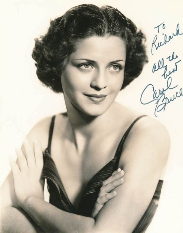 Born 1919 as Shirley Levy in New York City, New York, American band singer, Broadway star and actress Carol Bruce began her career as a singer in the late 1930s with Larry Clinton and his band. She sang with Ben Bernie’s orchestra in 1940-1941.
