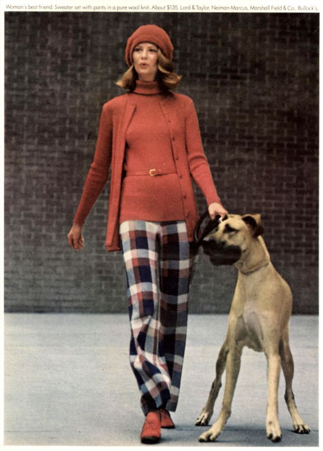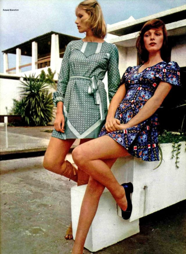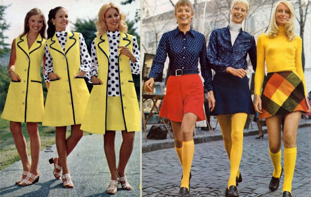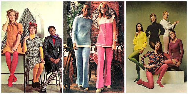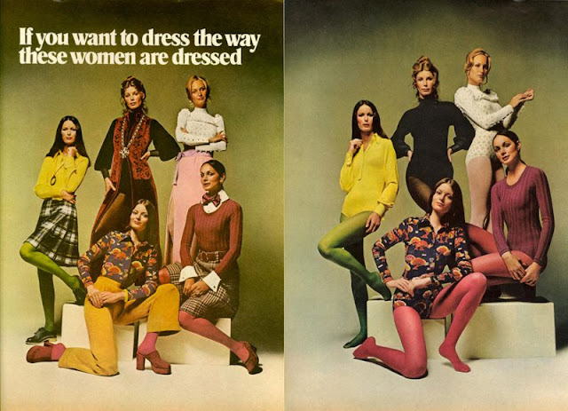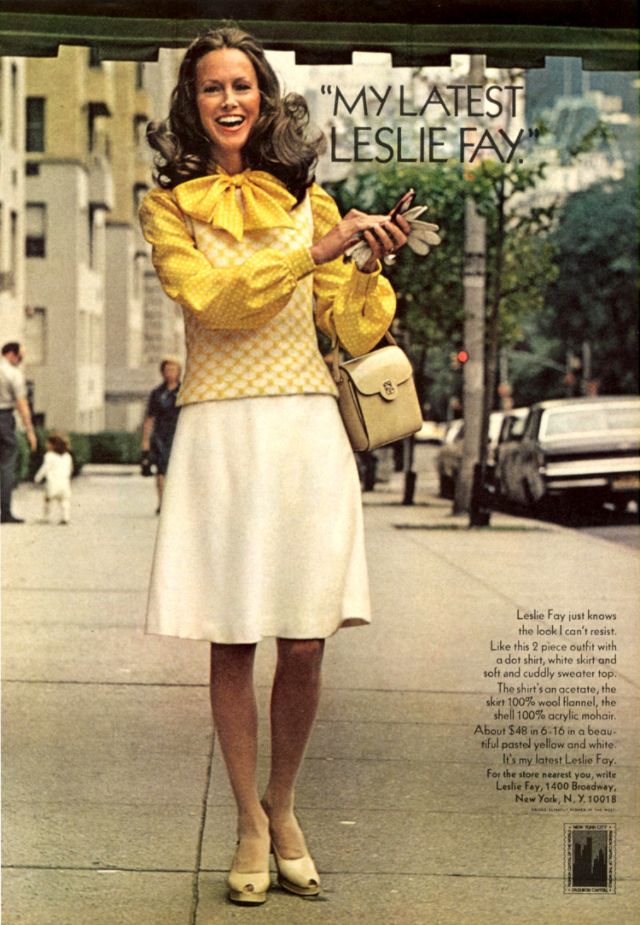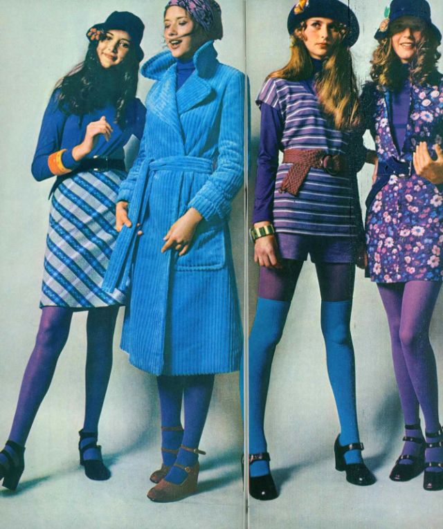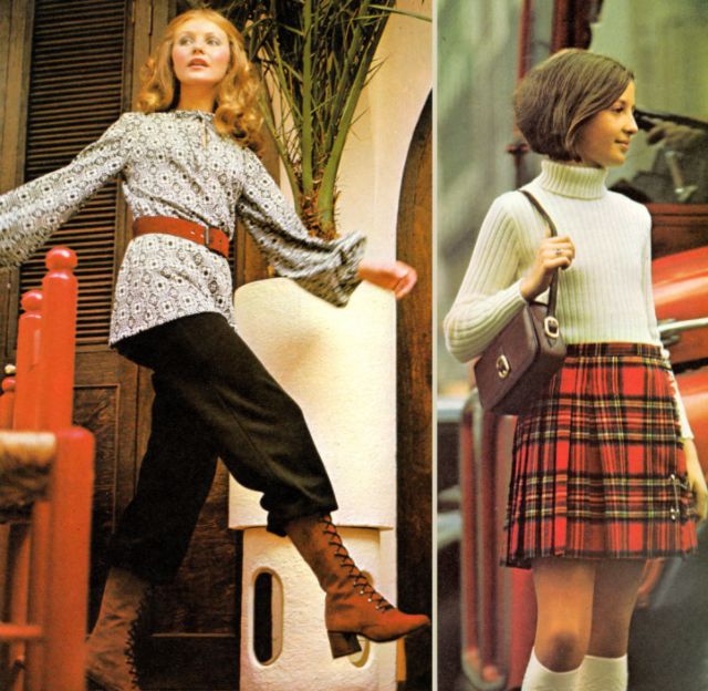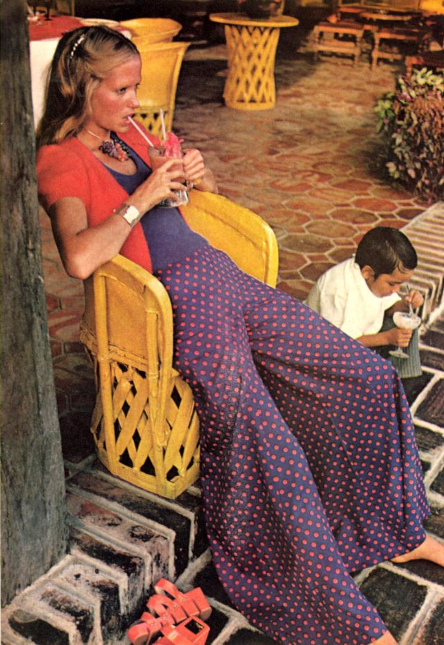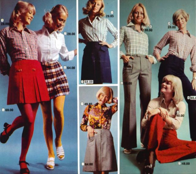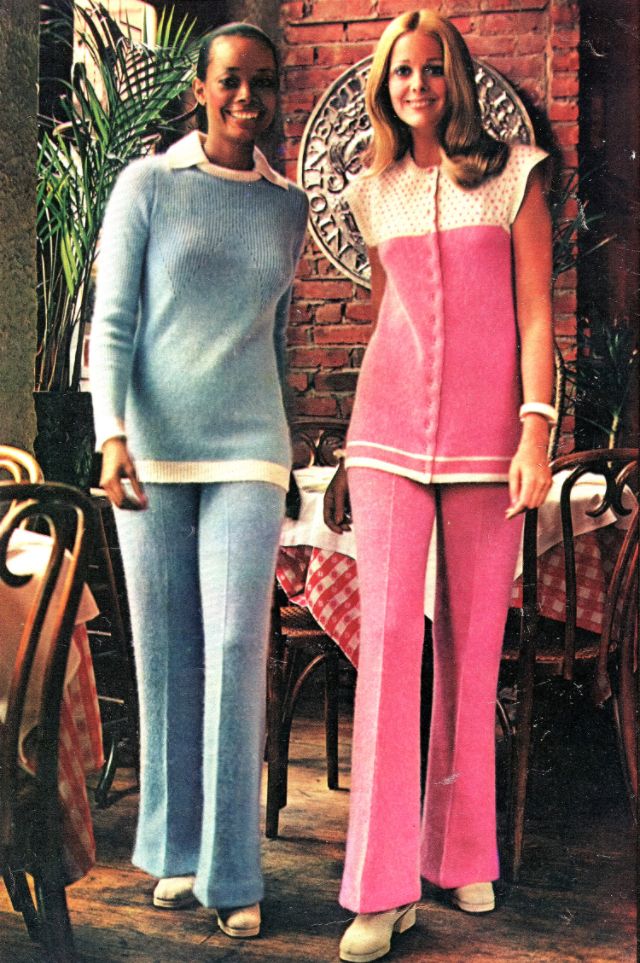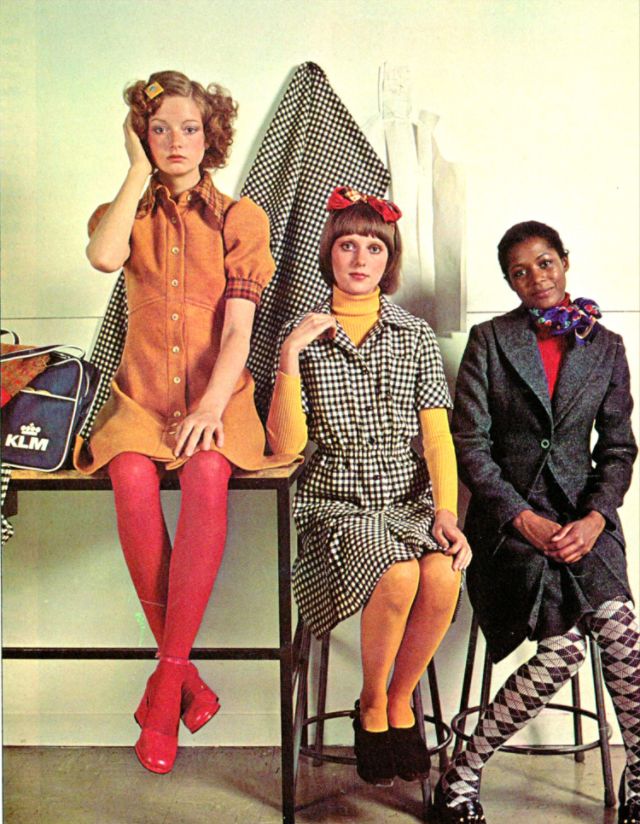 By 1972, the feel of the peppy mod sixties had faded away. In its place was a style that combined elements from the hippy counter-culture – by now, no longer really even “counter”, but a mainstream ideal embraced by the largest generation ever, the Baby Boomers. Additionally, Women’s Lib had its impact, with pants for women suddenly being the “in” look.