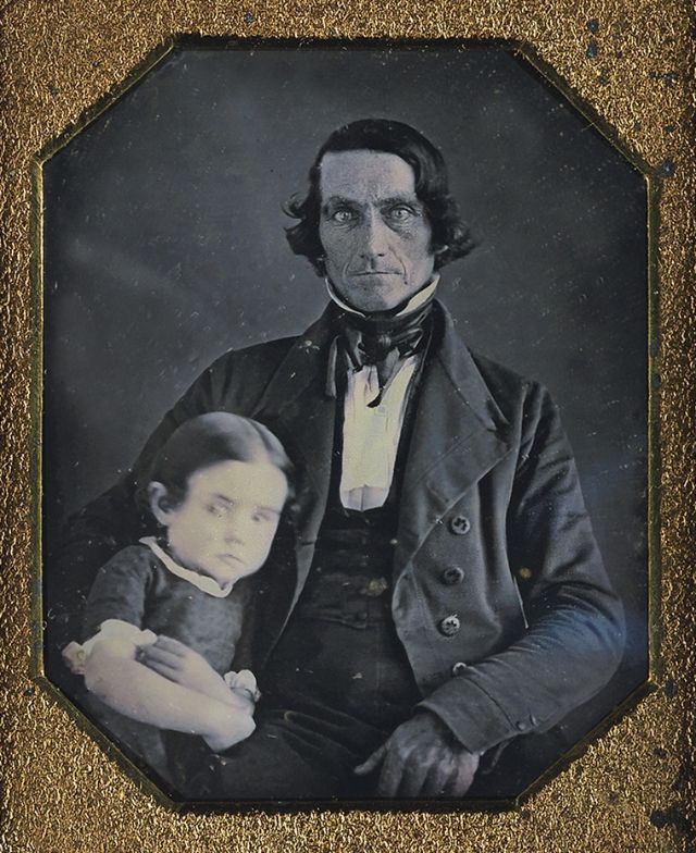 Portrait of an unidentified man with his child, circa 1847. (Photo by Augustus Washington)