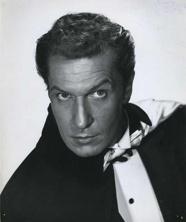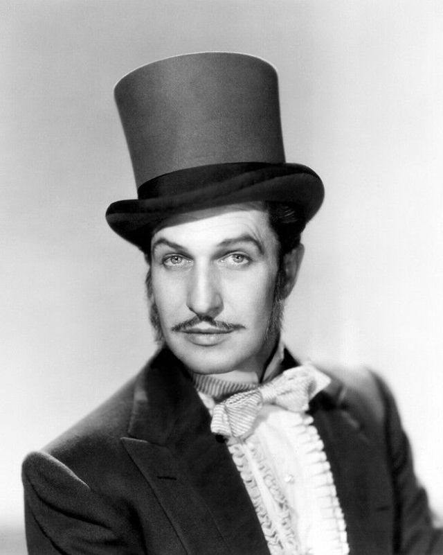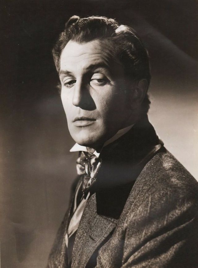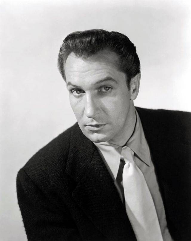 Born 1911 in St. Louis, Missouri, American actor Vincent Price had his first film role as leading man in the 1938 comedy Service de Luxe. He became well known as a character actor, appearing in films such as The Song of Bernadette (1943), Laura (1944), The Keys of the Kingdom (1944), Leave Her to Heaven (1945), Dragonwyck (1946), and The Ten Commandments (1956).