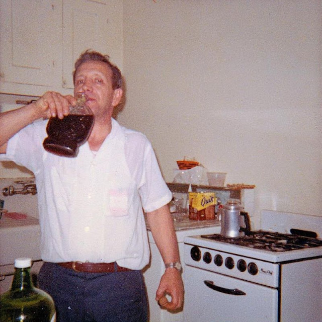 Next we see them joking around in hilarious drinking scenes, such as the one where it looks like the spigot of a keg is sticking out of the man on the right’s white vest. In the next one, we see one of the buddies lecturing the other with a “Donnybrook” sign now attached to the tree. This is followed by the one man blowing air at his friend with a fireplace blower. The final scene takes a more serious turn as the one man has resulted to a large rock while the other hides behind the tree.