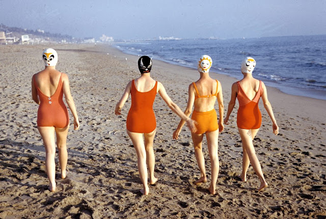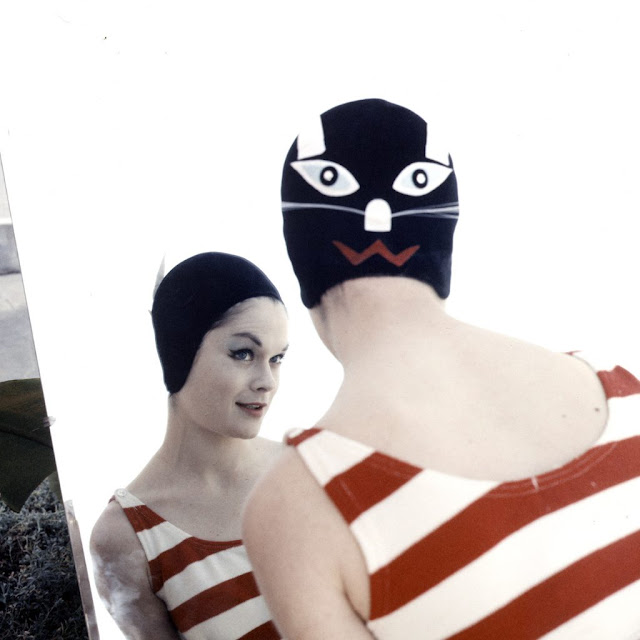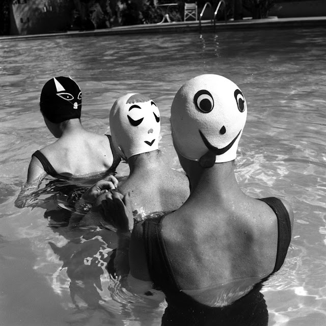 These vintage crazy swimming caps were invented by a Long Island housewife, Betty Geib, to amuse her children. After they flew off the rack at a church bazaar, she started a new business, Betty Darling, selling her wares for $3 to $6.