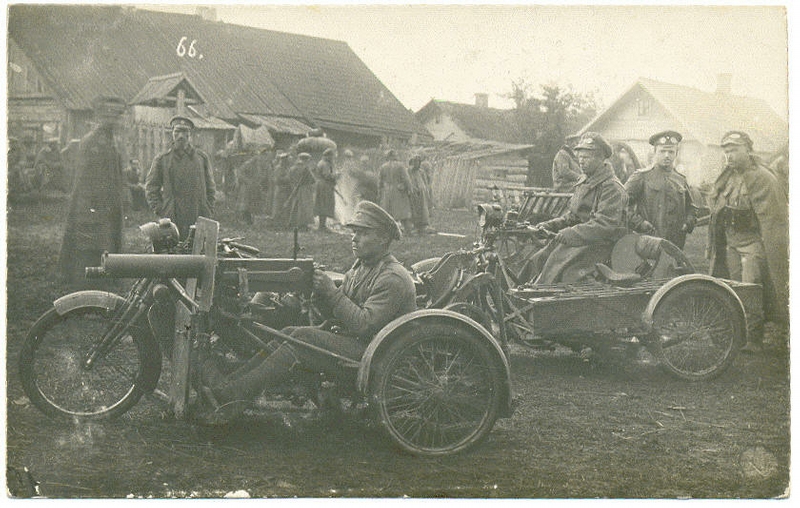 39th Tomsk infantry regiment with their motorcycle-mounted machine guns during WW1, Russia.