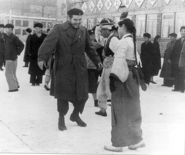 Che Guevara greeting a woman in North Korea