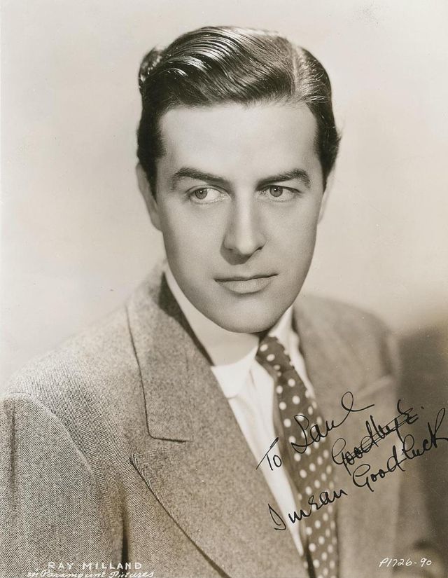 Born 1907 as Alfred Reginald Jones in Neath, Glamorgan, Welsh-American actor and film director Ray Milland served in the Household Cavalry of the British Army, becoming a proficient marksman, horseman and aeroplane pilot before becoming an actor. He had his first major role in The Flying Scotsman (1929). This led to a nine-month contract with MGM, and he moved to the United States, where he worked as a stock actor.