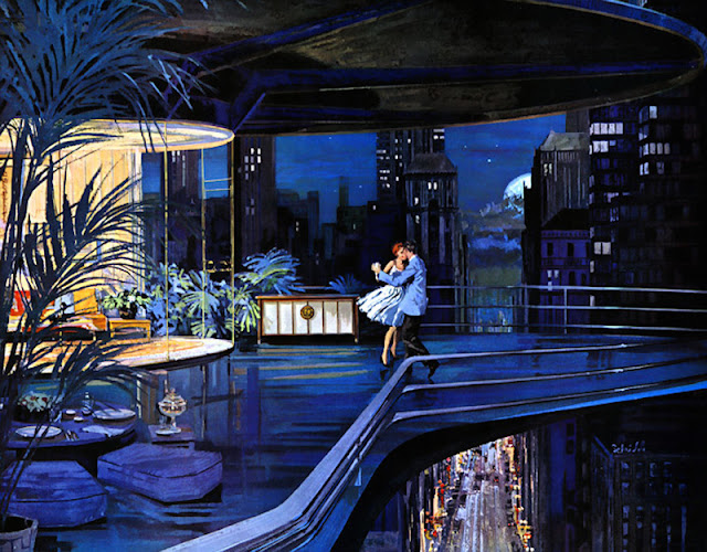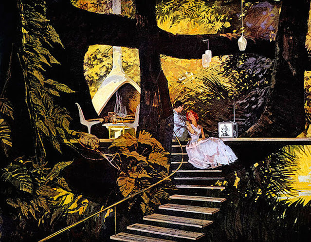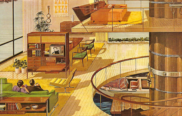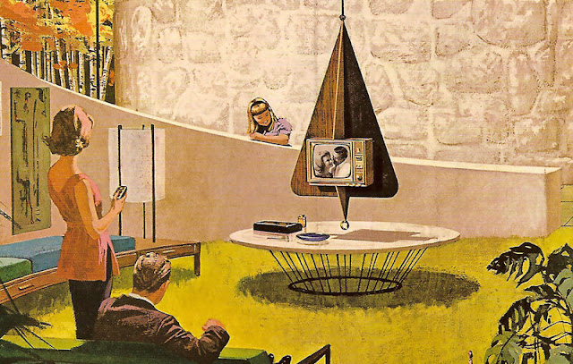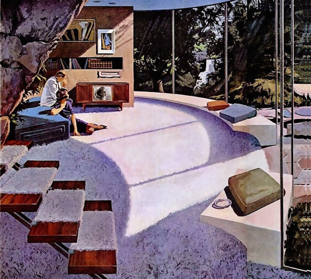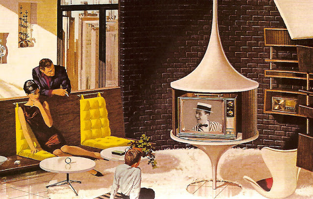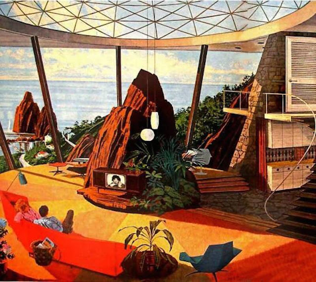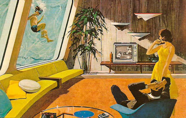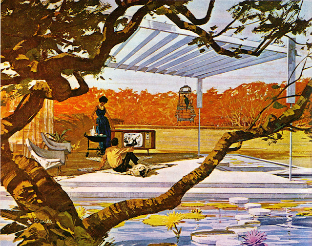 In 1961, Motorola asked Charles Schridde to envision the homes of the future centered around Motorola’s most recent line of electronics. The ads created by Schridde ran in Life Magazine and The Saturday Evening Post from 1961 to 1963 and depicted an optimistic future made of lavish, elegant, dream-homes, where domestic technologies and serene landscapes coexisted harmoniously. Through his stunning drawings, we were offered a fascinating glimpse of what the past thought the future would be like, and how home technology companies capitalized on their consumers’ minds by swaying them in the direction that these electronic products were relevant to that ultimate future.