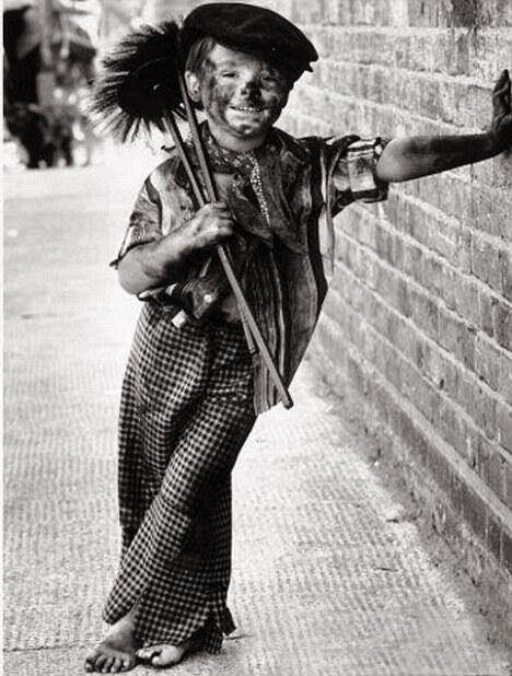 A 6 year old Chimney Sweep photographed before child labor laws were put into effect, 1934.