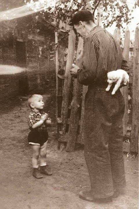 A young boy patiently waiting for his birthday gift from poppa, ca. 1929