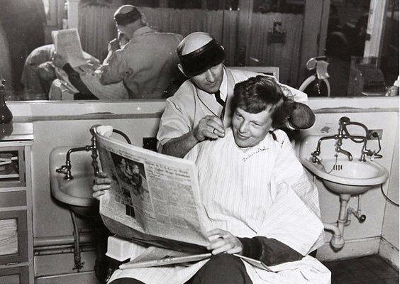 Hairstyles in the 1940s were fuller and longer than those of the 1930s and hair was cut in a rounded U-shape at the back, curving up towards the ears. There were always a lot of layers because the hair was usually worn in curls or soft waves, usually just below shoulder-length. Straight hair was simply unfashionable. To achieve the curls, girls who couldn’t afford a weekly “wash and set” at the hairdresser would pin up their wet hair in bobby pins each night to make pin-curls.