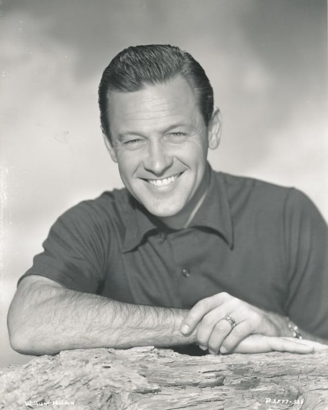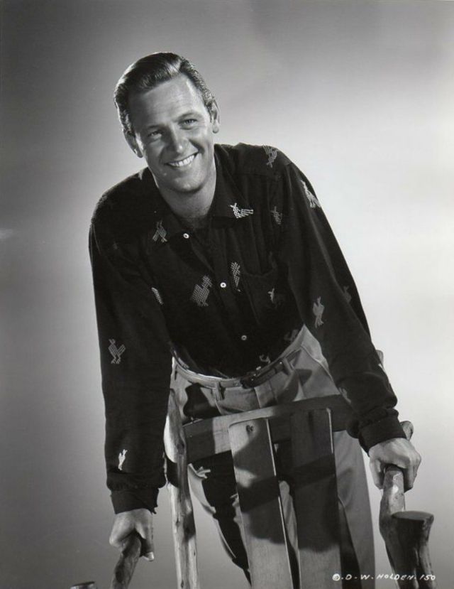 Born 1918 in O’Fallon, Illinois, American actor William Holden appeared uncredited in Prison Farm (1939) and Million Dollar Legs (1939) at Paramount. He had his first starring role was in Golden Boy (1939), costarring Barbara Stanwyck, in which he played a violinist-turned-boxer.
