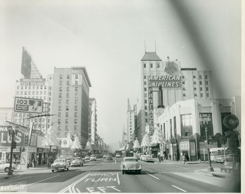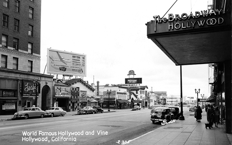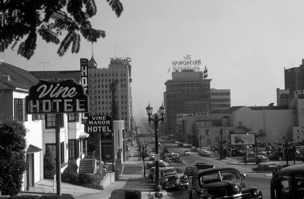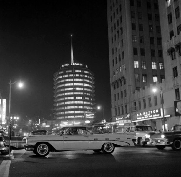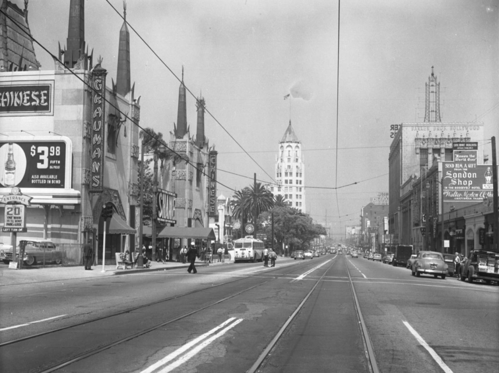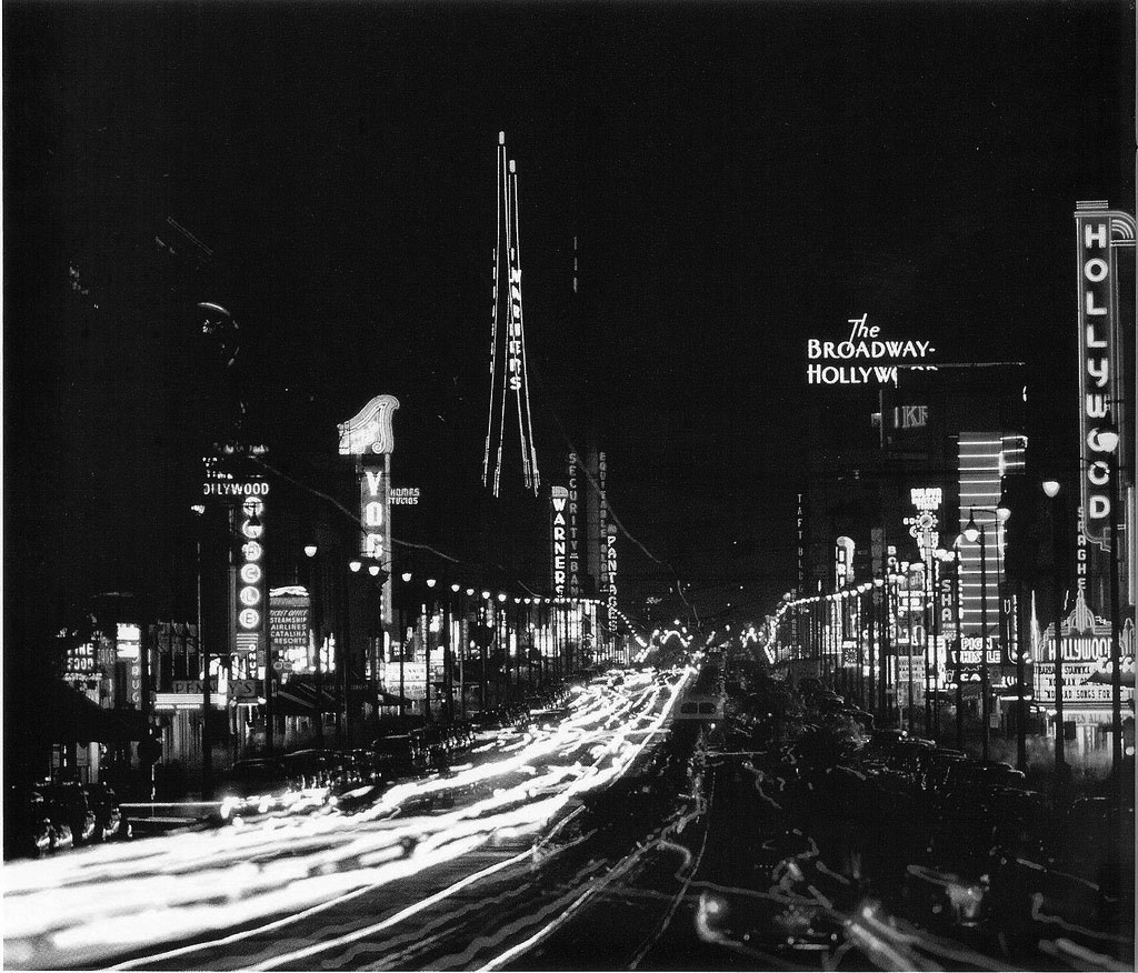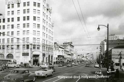 Capitol Records Building under construction, 1955Looking North Up Vine St. At The Capitol Records Tower From Hollywood Blvd. 1959Looking Nw From Hollywood Blvd. & Argyle St. 1959View looking northwest on the Hollywood Freeway near Vine Street. 1955Cruising down Hollywood Boulevard on a Saturday night in a shining new 1959 Pontiac Coupe.View looking south on Vine Street from just north of Yucca Street. 1950Fans Outside Brown Derby Restaurant, 1952Grauman’s Chinese Theater, Hollywood, 1954Looking east on Sunset Boulevard, 1959Stan’s Drive In Restaurant Los Angeles, 1950s (Highland Avenue & Sunset Boulevard)Long exposure of Hollywood and Vine at night. Capitol Records Building is in the background. 1956Hollywood Boulevard looking East towards Vine Street. 1959Joan Bradshaw, Vine Street, Hollywood, Sept 8, 1957Looking East On Hollywood Blvd. Towards Highland Ave. 1950Looking east on Hollywood Boulevard at Wilcox Avenue. 1950sHollywood Blvd. & Argyle St., 1956Citizen News Newspaper Offie On Wilcox Ave., Just North Of Sunset Blvd., 1959Streetcar On Hollywood Blvd., 1956The corner of Hollywood Boulevard and Highland Ave, 1950Pacific Electric streetcar no. 5170 proceeds through the intersection at Highland Blvd. and Hollywood Blvd., heading southbound past the famed (and long-gone) Hollywood Hotel. 1950A view of Hollywood and Vine from the roof of the Brown Derby restaurant. 1950Hollywood Boulevard with the Roosevelt Hotel and Grauman’s Chinese theater in 1957.The Mutual Don Lee Broadcasting Studios, now the “New Hollywood Home of KHJ”, 1950A couple in an MG being served at Tiny Naylors. 1952View looking south on Highland Avenue at Hollywood Boulevard showing the Van Nuys Line Red Car heading north toward Cahuenga Pass. 1950View of CBS Columbia Square looking north from the Gower Gulch shopping center. The Hollywood Sign is seen in the distance. 1951Grauman’s Chinese Theater, 1956.Outside the 26th Annual Academy Awards at RKO Pantages Theater in Hollywood, 1954.Hollywood & Vine, 1950