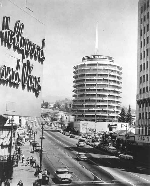 The Capitol Records Building on Vine Street, just north of Hollywood Boulevard, was built in 1956, and the Hollywood Walk of Fame was created in 1958 as a tribute to artists and other significant contributors to the entertainment industry. The official opening was on February 8, 1960.